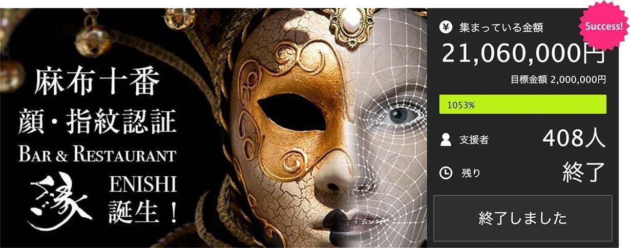 縁(えにし)はマクアケのクラウドファンディングで2019年度飲食店BAR部門1位!