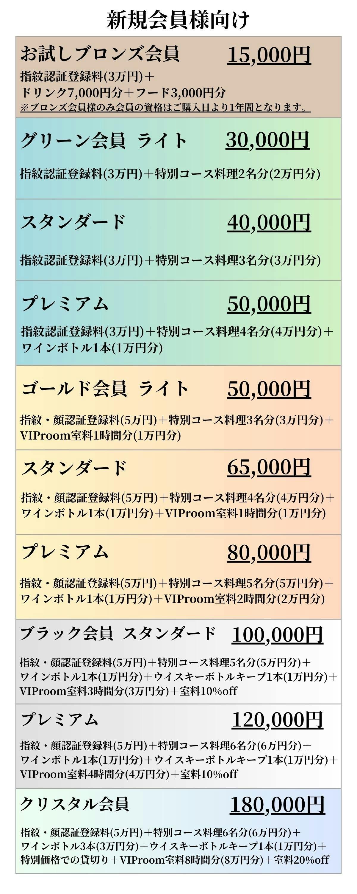 ※初回来店時に、指紋認証、顔認証登録をさせて戴きます(ブロンズ、グリーン会員は指紋のみとなります)