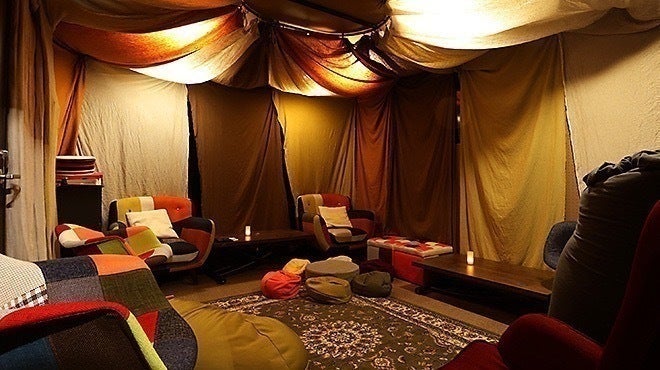 会員様専用個室は、都心にいながら自然を感じる魅力的なキャンプ“グランピング”をイメージしました。「日常の緊張から解き放たれ、くつろぎながらも心躍る“都心でのグランピング”」というオーナーのこだわりが詰まった新しいスタイルです。