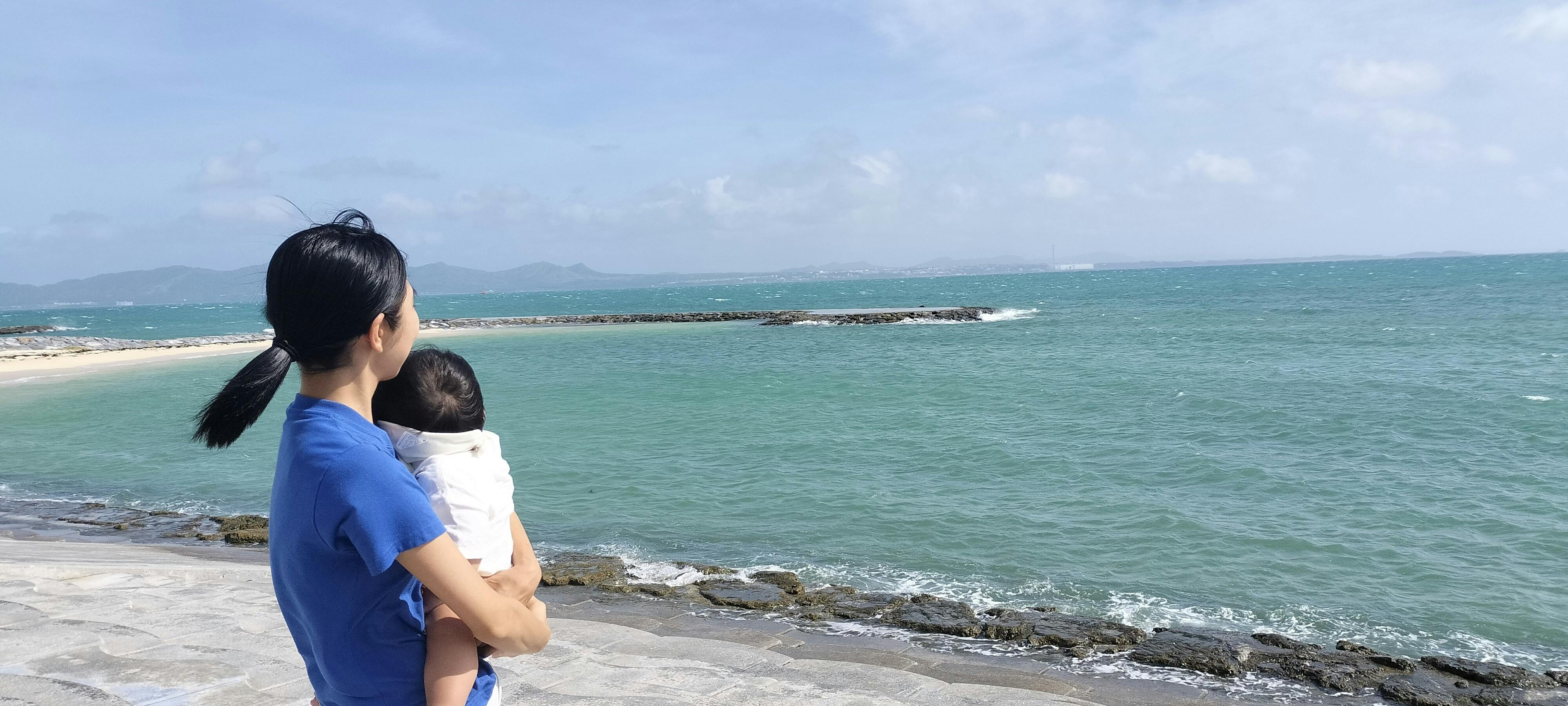画像は沖縄入りして次の日、ロケハンの時の写真。息子はこのあと、ベビーシートの中で2時間ほど爆睡してました。