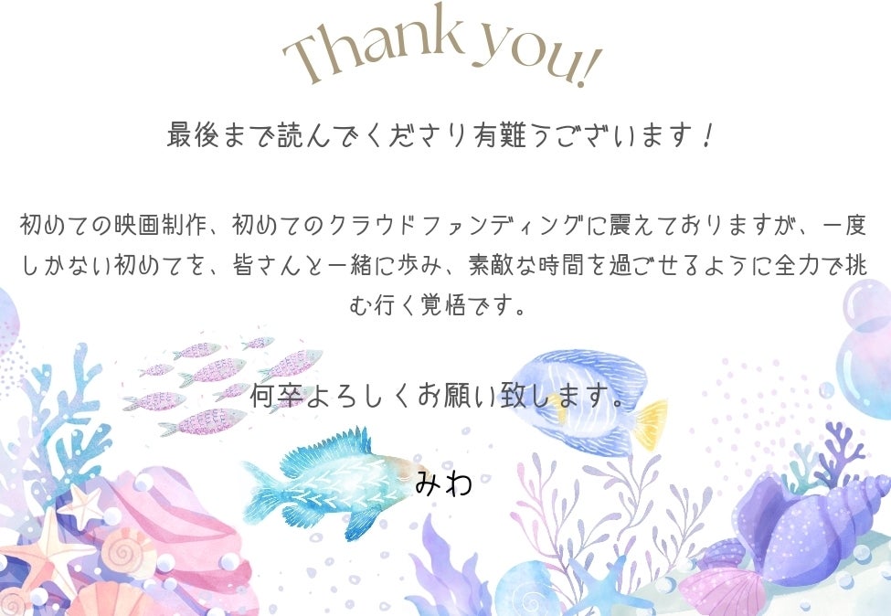 応援してくださった皆様のためにも、映画が良いものになるように最後まで頑張って製作いたします!