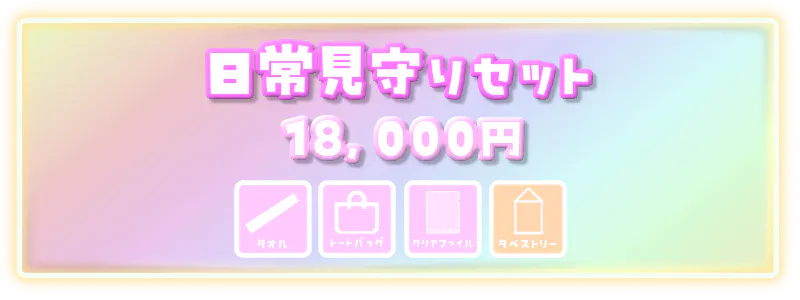 マフラータオル、トートバック、クリアファイルの3点セット+特典のタペストリー が入ったお得セット