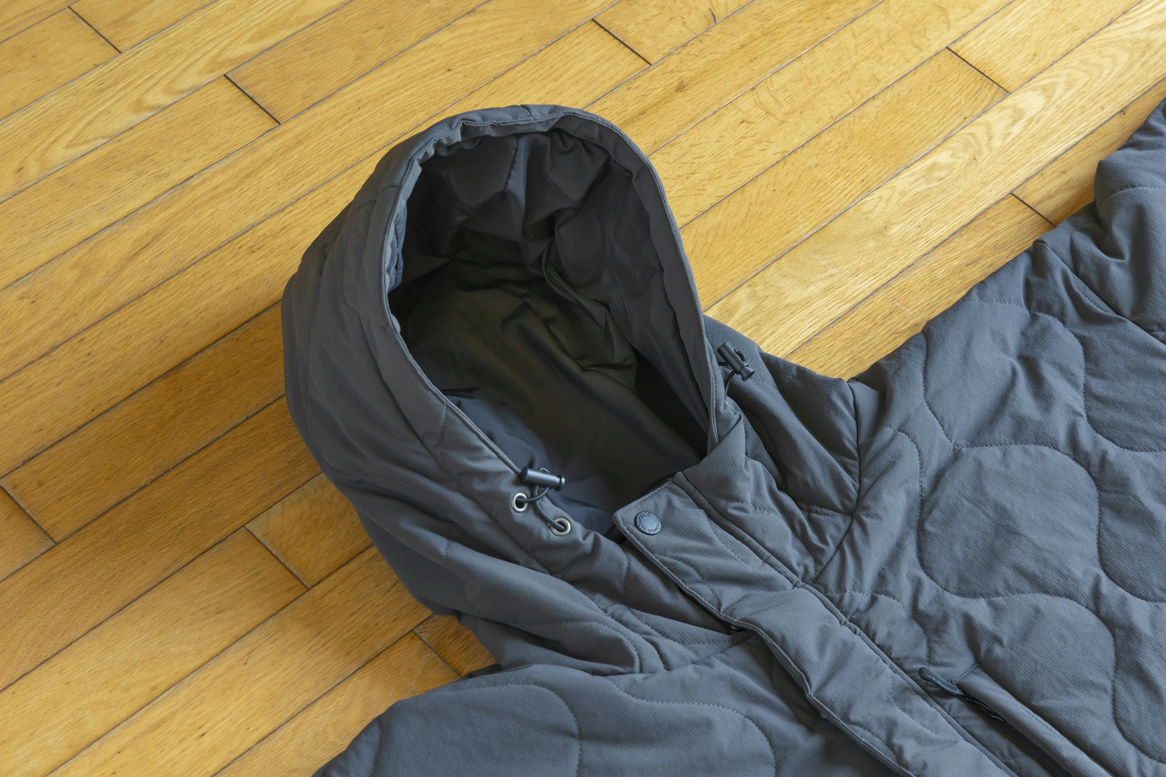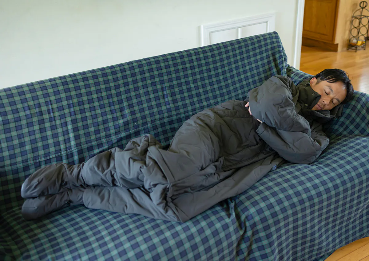 「モモンガ」は私たち全員が持っている37度前後の自然エネルギー・体温を熱源としています。身体とモモンガの間の「被服気候」といわれる空間を体温で暖めた空気で満たすことで、ゆったりと快適で移動してもずっと暖かさに包まれます。