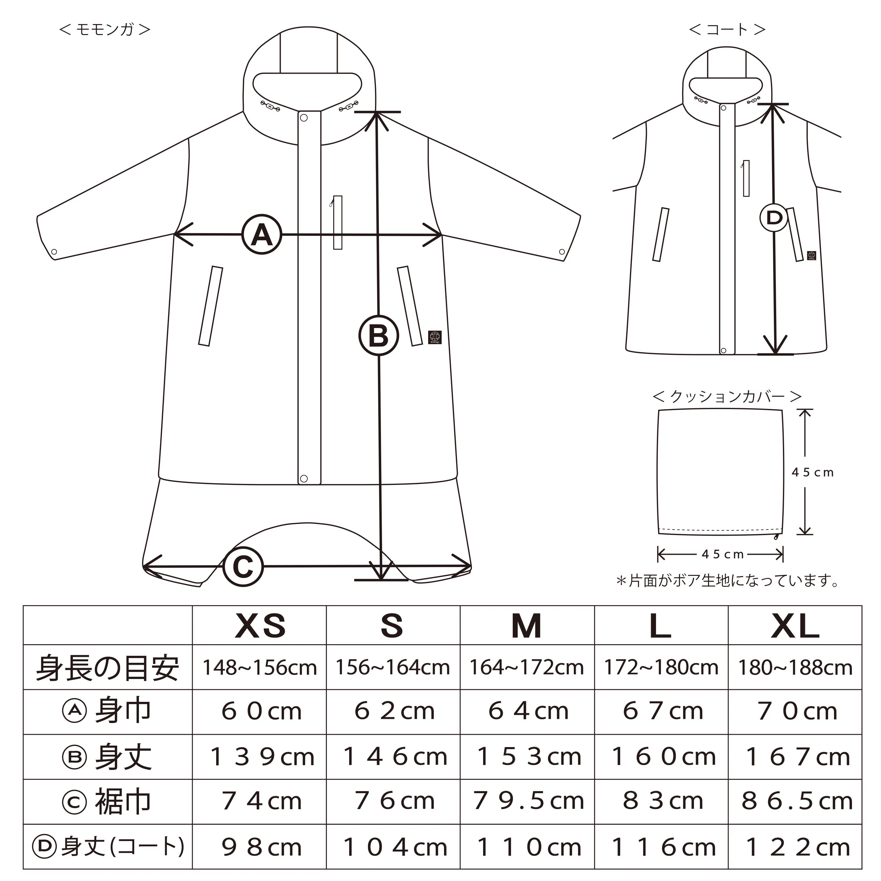 S、M、L、XL の4サイズ