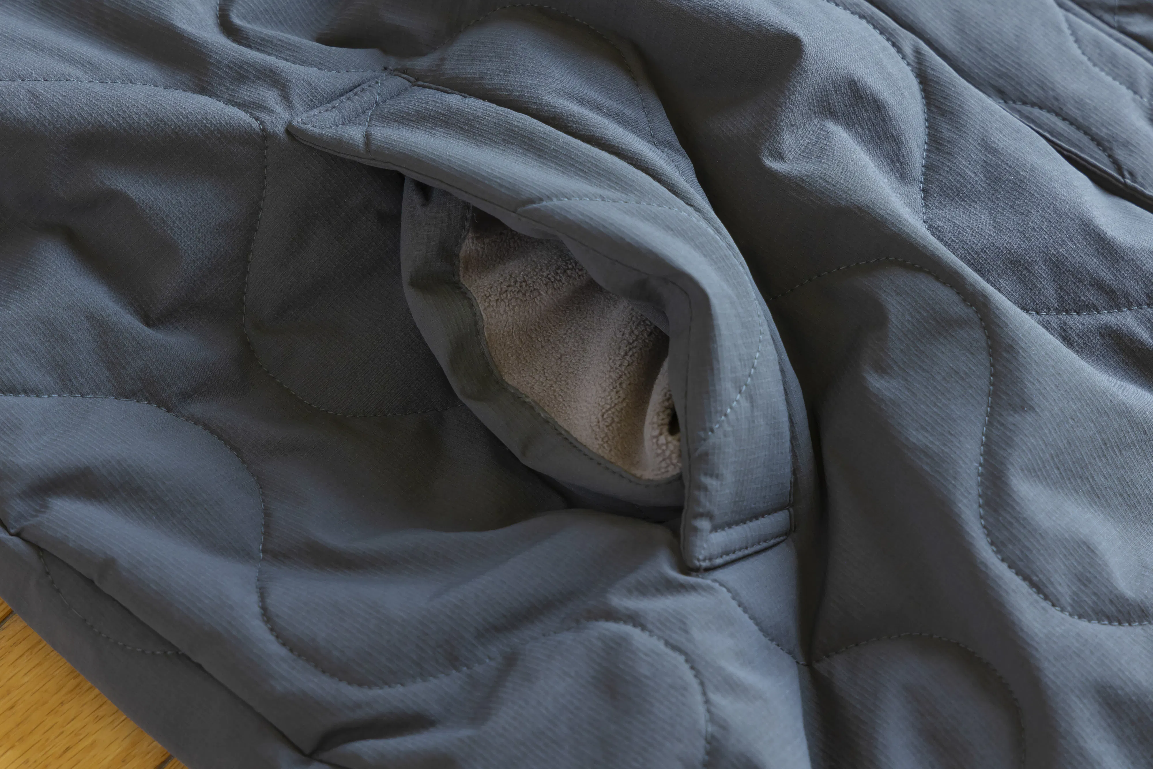 ミリタリーアイテムでよく使われるひょうたん型キルトステッチが施されているので、中綿が片寄らず均等な暖かさを保ちます。