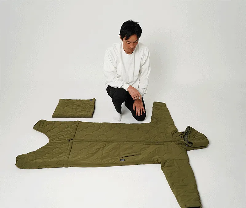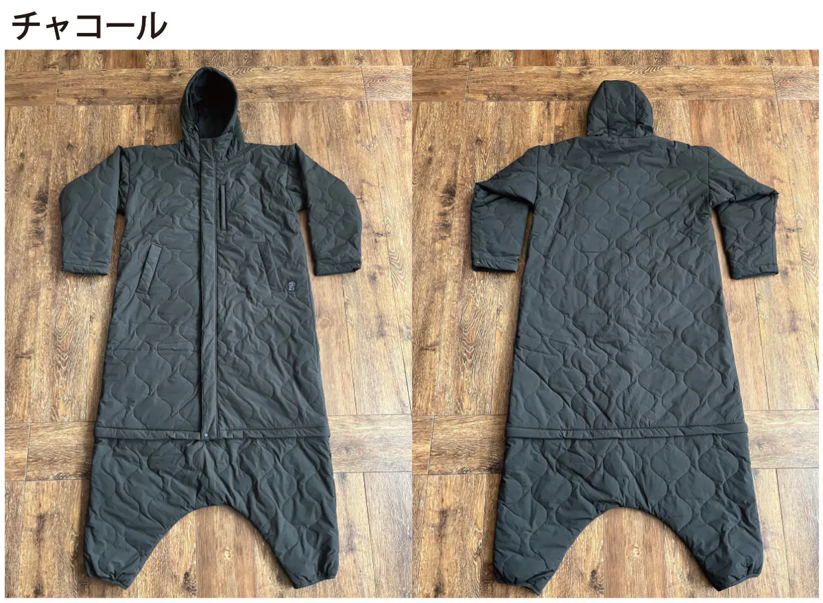 今回のプロジェクトでは「モモンガ」をもっといろんシーンで使っていただけるようにと考え、足元部分を取り外すと「ロングコート」としてお使いいただけるようにしました。