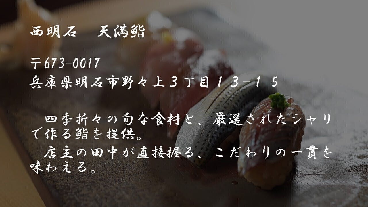 〝明石のタコ〟で有名な兵庫県明石で「天満鮨」という鮨店を営んでおります。