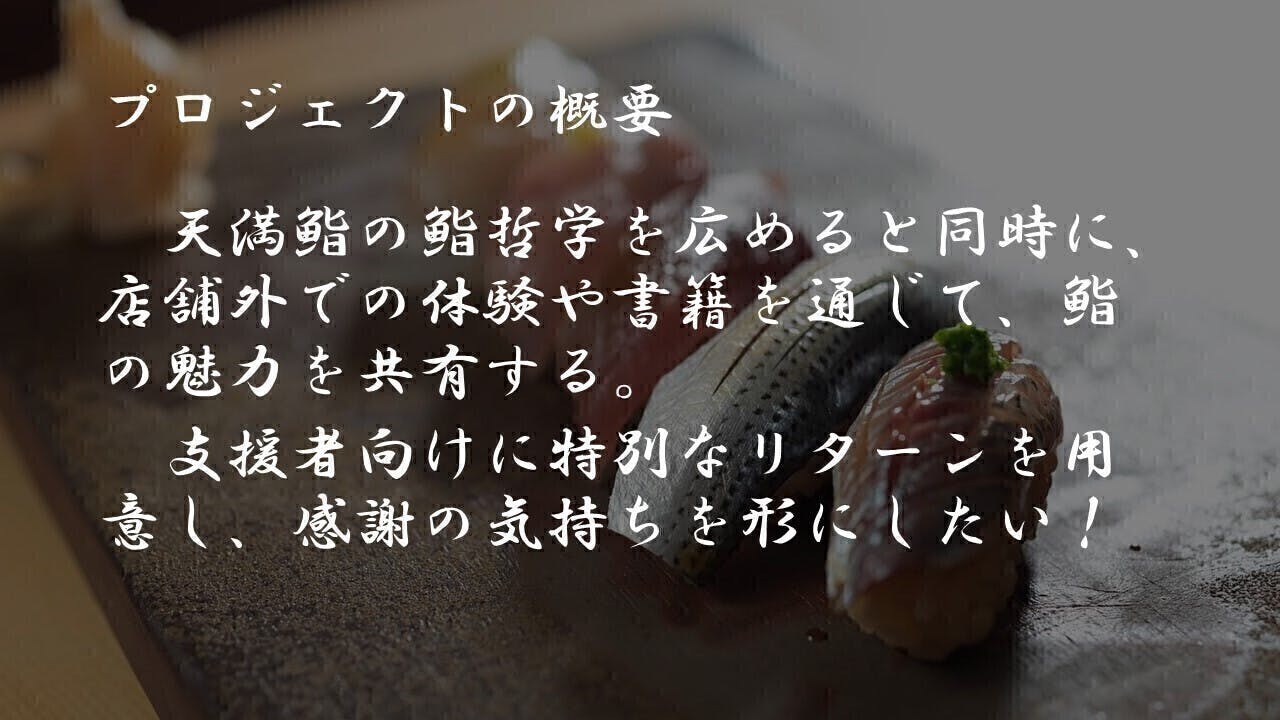 たとえ天満鮨に来なくても、豊かな心になれる。そんな一冊をつくります!