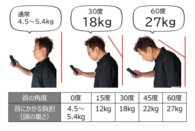 ストレートネックになると、体の約10%もある頭の重みを上手く分散して支えることができず、頭の重さがダイレクトに首や肩周りへの負荷になってしまいます。
