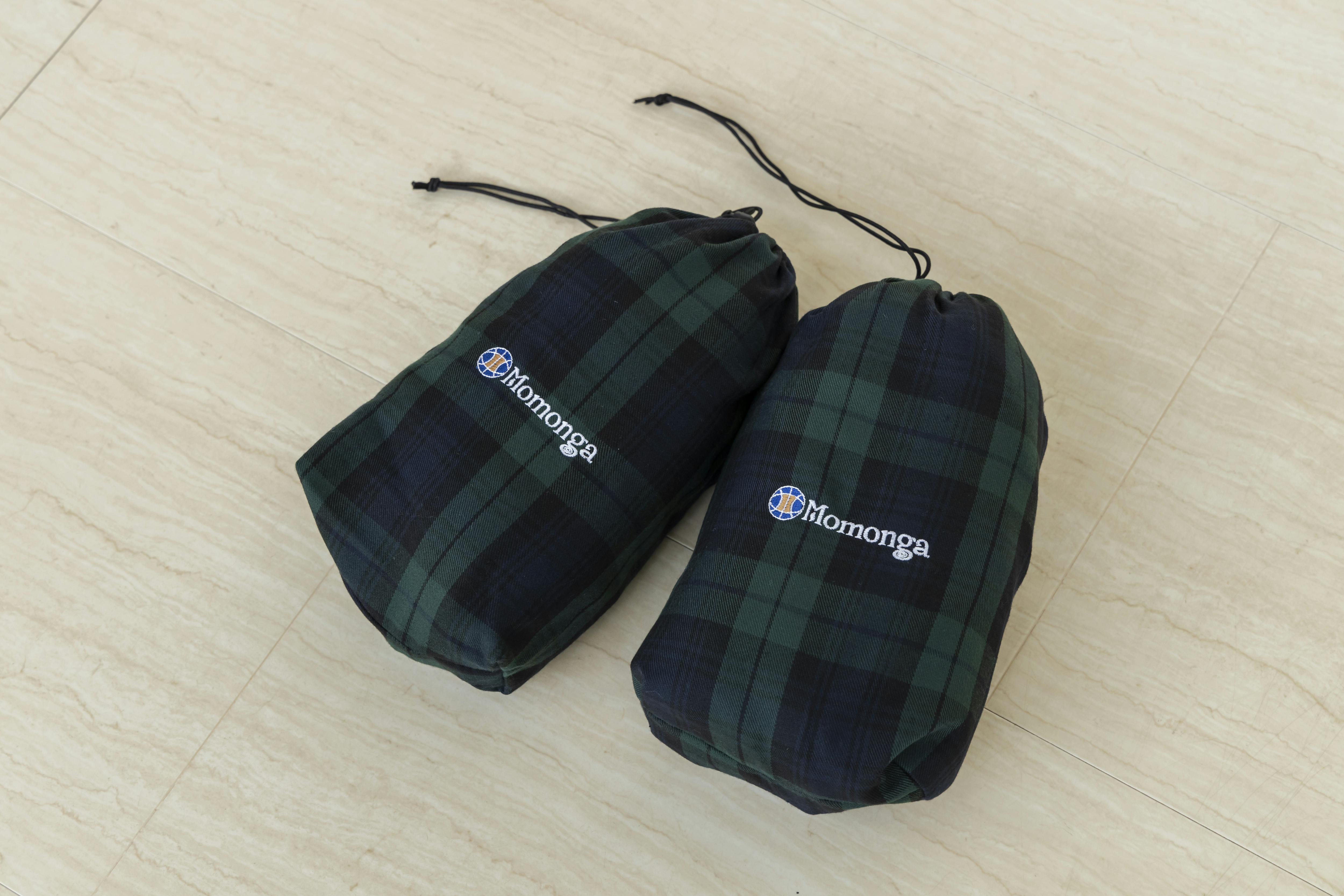 今回の「モモンガ2WAY」では、伝統的なブラックウォッチ柄のモモンガを企画しました。日常の暮らしにもちょっとしたお出掛けにも合う、落ち着いた雰囲気のモモンガとなっています。