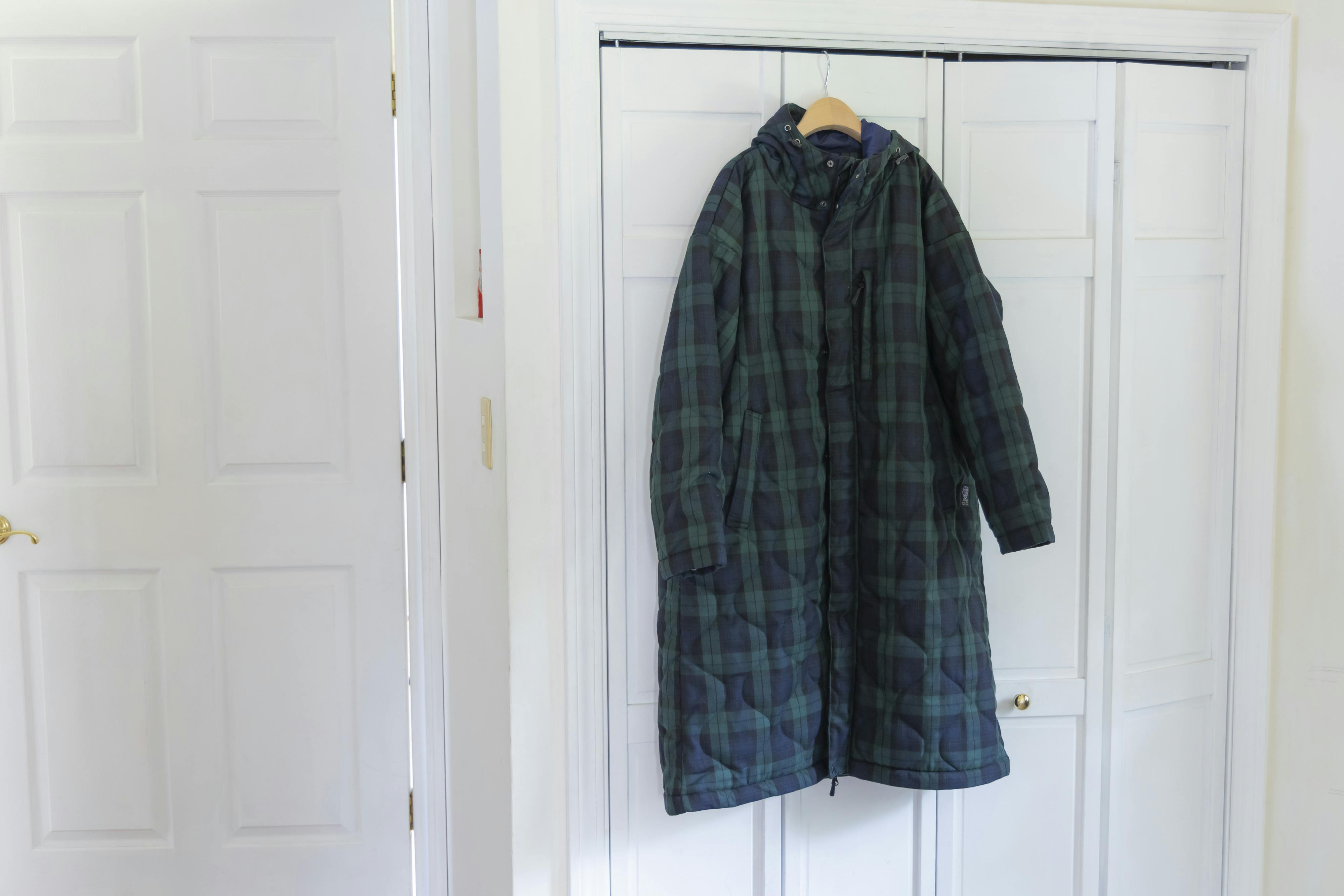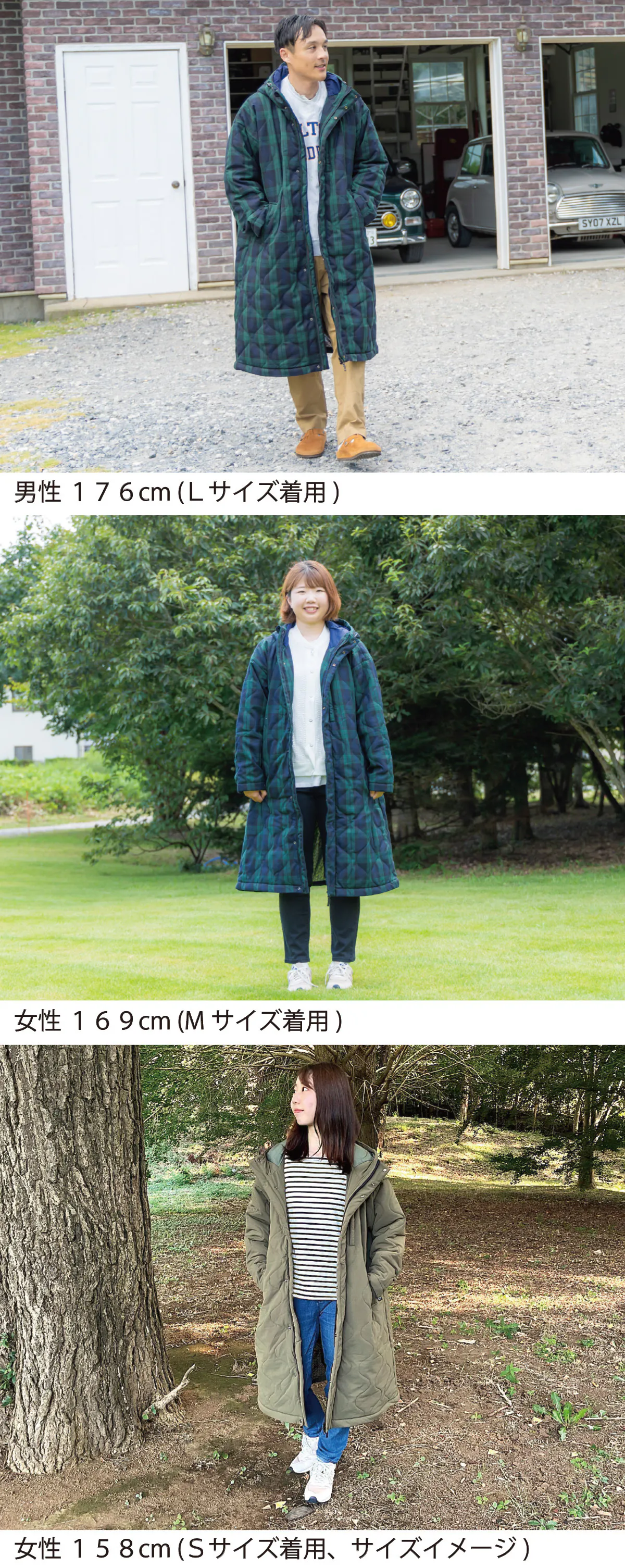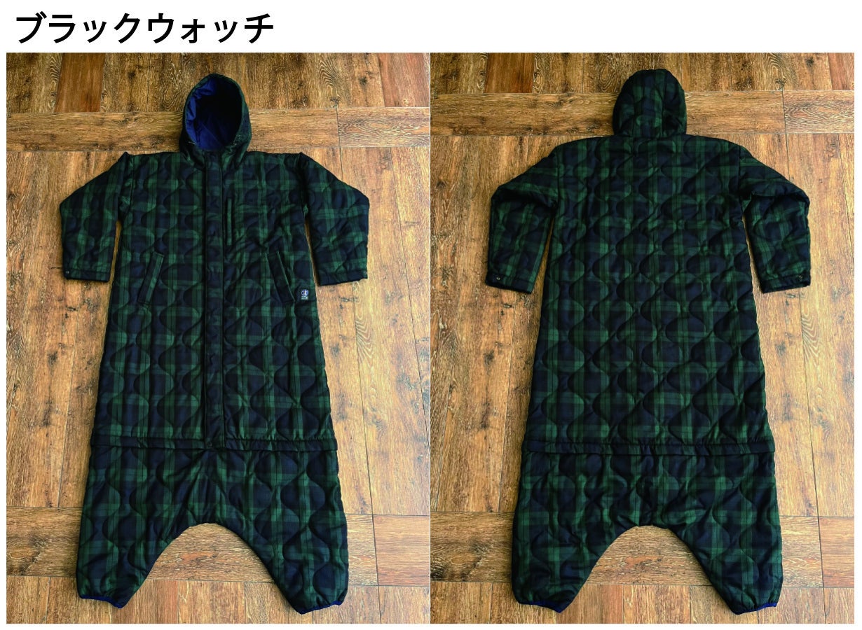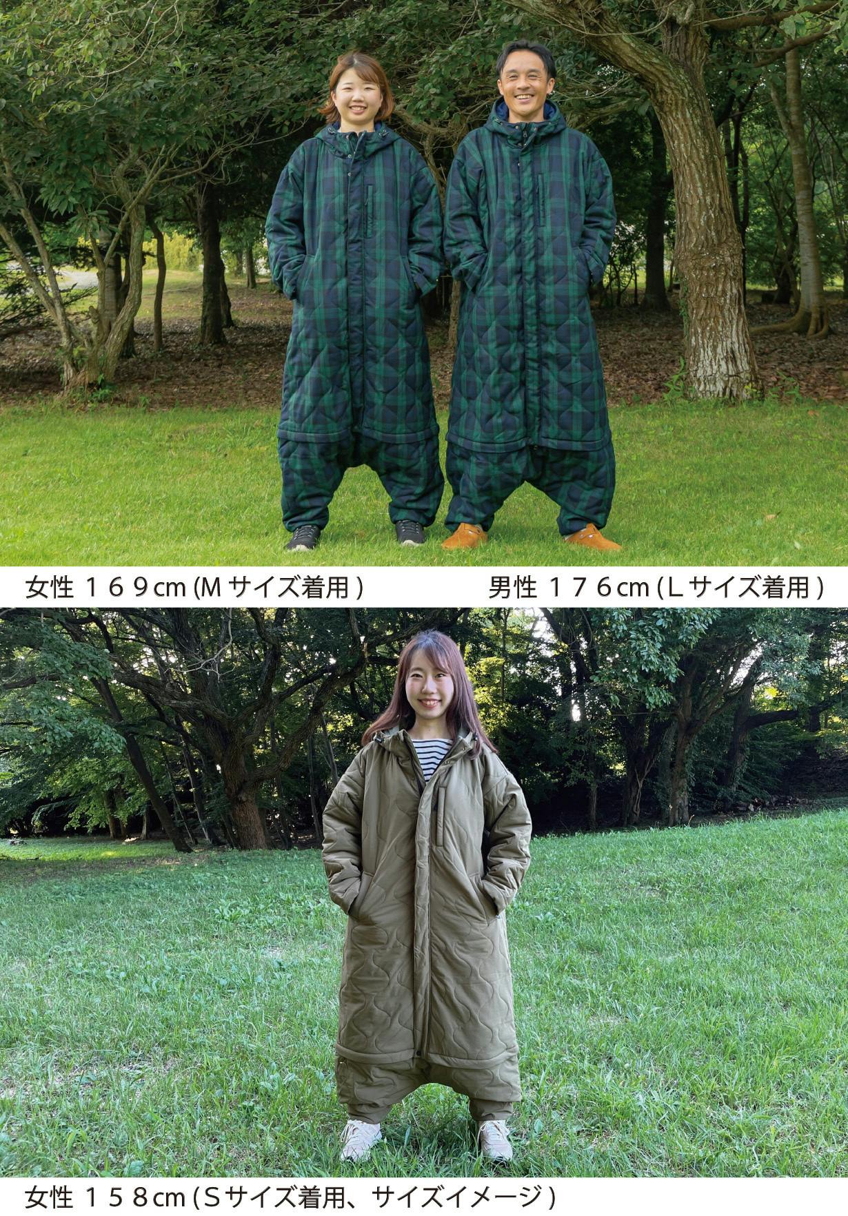 封筒型寝袋から派生したデザインはロングスカートでもスーツでもそのまま上に重ねて簡単に着用できます。