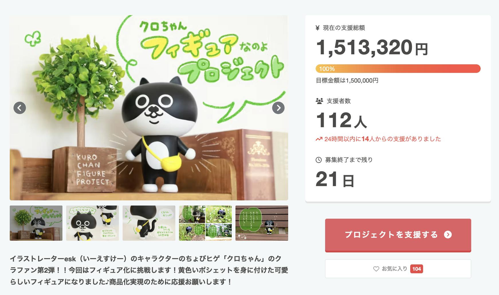2024/08/26 19:33CAMPFIREスタッフです。「クロちゃん」フィギュアなのよプロジェクト!皆様の熱いご支援のおかげで無事商品化が決定しました!https://camp-fire.jp/projects/785154/viewスタートから1週間足らずでの達成となりました。ここからは受注販売と同じ仕組みになります。支援いただくと必ず商品が届きますのでぜひご支援検討よろしくお願いいたします!CAMPFIREスタッフ もっと見る