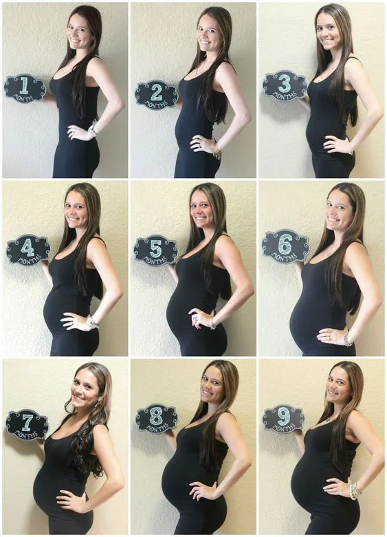 ただ、話を聞いてみたところ、実はこのようなマタニティフォトを妻が撮影し続けるのは想像以上に大変なことだったのです。Instagramで見かける以下のような、お腹の成長がわかりやすい写真を撮ろうとしても、毎回同じアングルで撮影するのが難しく、何度も撮り直しが必要になります。私が妻の撮影を手伝える時はまだ良かったのですが、妻一人で撮影する時はさらに難しく、時には10枚以上も撮り直しをすることもありました。