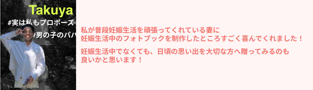 私たち夫婦だけでなく、多くの人が感じているこのような課題を解決したい。そして、妊娠期間中の特別な瞬間をもっと簡単に、気軽に記録し、フォトブックというカタチに残せるようにしたい。