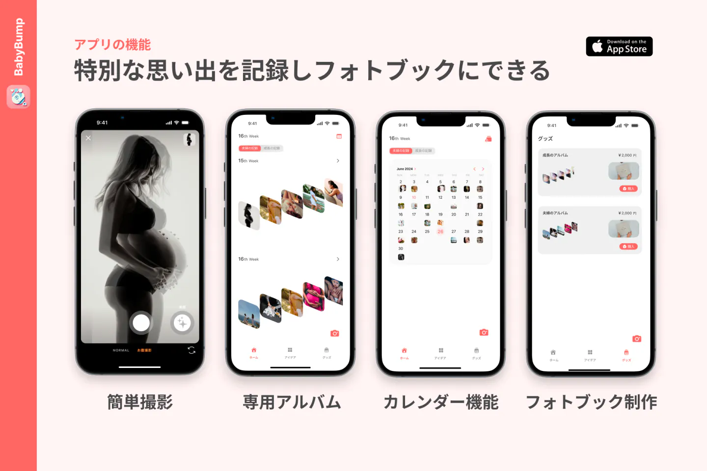 「BabyBump」は、マタニティフォトなどの妊娠期間中の思い出を夫婦で撮影し、簡単にフォトブックを制作するため、未来のパパ達により開発されたアプリです。マイナートラブルの多い妊婦さんのためにお腹の中で成長する赤ちゃんとの日々を夫婦で記録し、特別な瞬間を未来の家族に残せる世界を実現します。