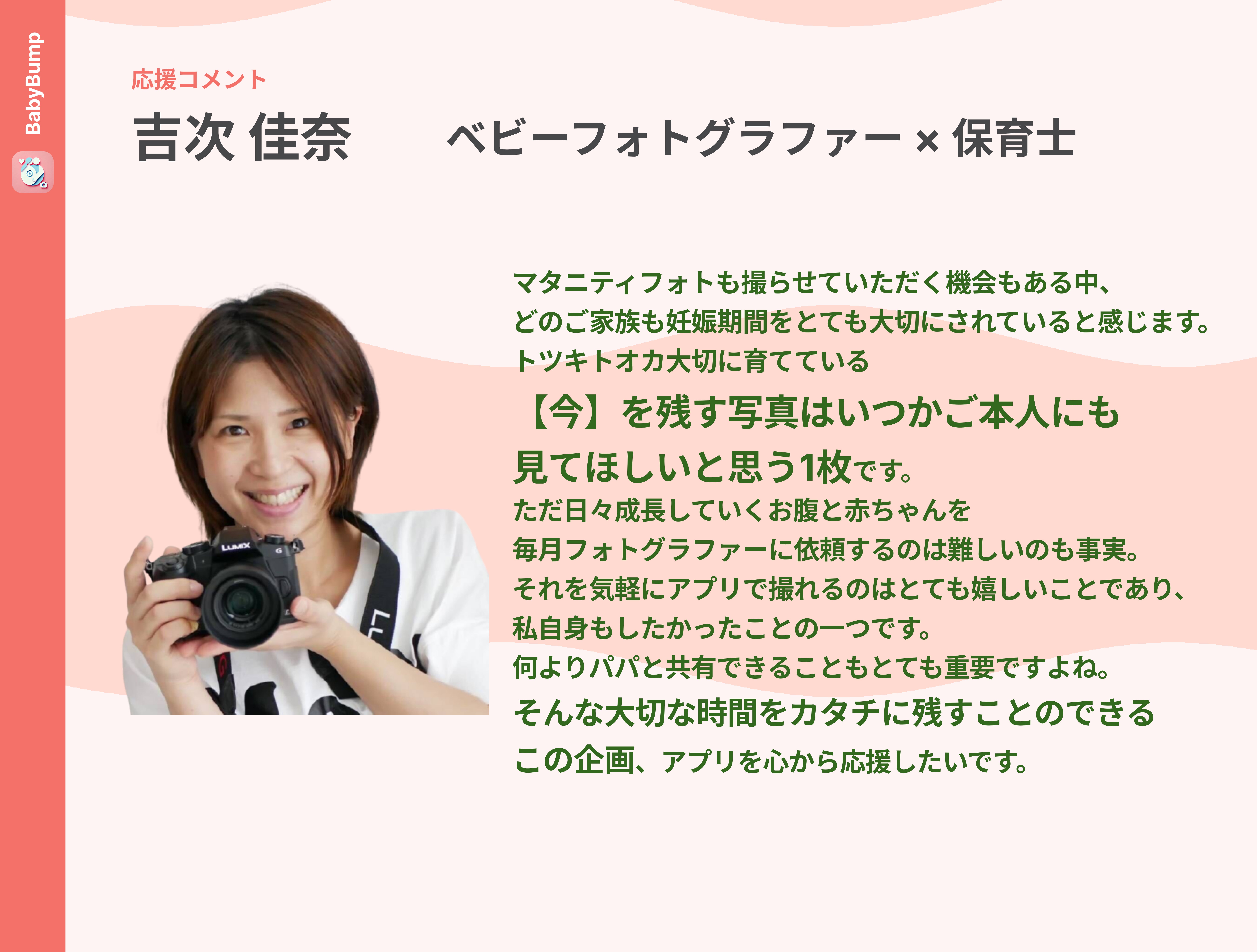 2025/01/19 08:08皆さま、多大なるご支援誠にありがとうございます!BabyBumpの輪をさらに広げるため、本日CAMPFIREトップページのメインエリアにプロジェクトを公開中です!これまで皆様のご支援のおかげでクラファンのトップページの人気ランキングに掲載されるなど、BabyBumpのご支援の輪が広がり続けています。現在のところ最も人気の高いリターンであるフォトブック制作は、皆様が日頃から大切に撮り溜めている思い出のお写真をBabyBumpチームが心を込めてフォトブックにさせて頂きます。最近はスマホで写真を撮ることが一般的になりましたが、フォトブックとして形に残すことでふとした瞬間に手に取って思い出を振り返ることができます。幸せだった思い出も、大変だった思い出も、かけがえのない物語の詰まった1冊に生まれ変わるので是非ご検討して頂けると幸いです。本プロジェクトを通し、妊婦さんが抱える様々なトラブルや課題への関心が広がり、妊娠期間中のご夫婦がより幸せな時間を過ごし、より社会全体で支え合えるような日本社会をつくりたい。そんな世の中を実現するためチームメンバー一度引き続き頑張ります!引き続きご支援、シェアへのご協力よろしくお願い致します。 もっと見る