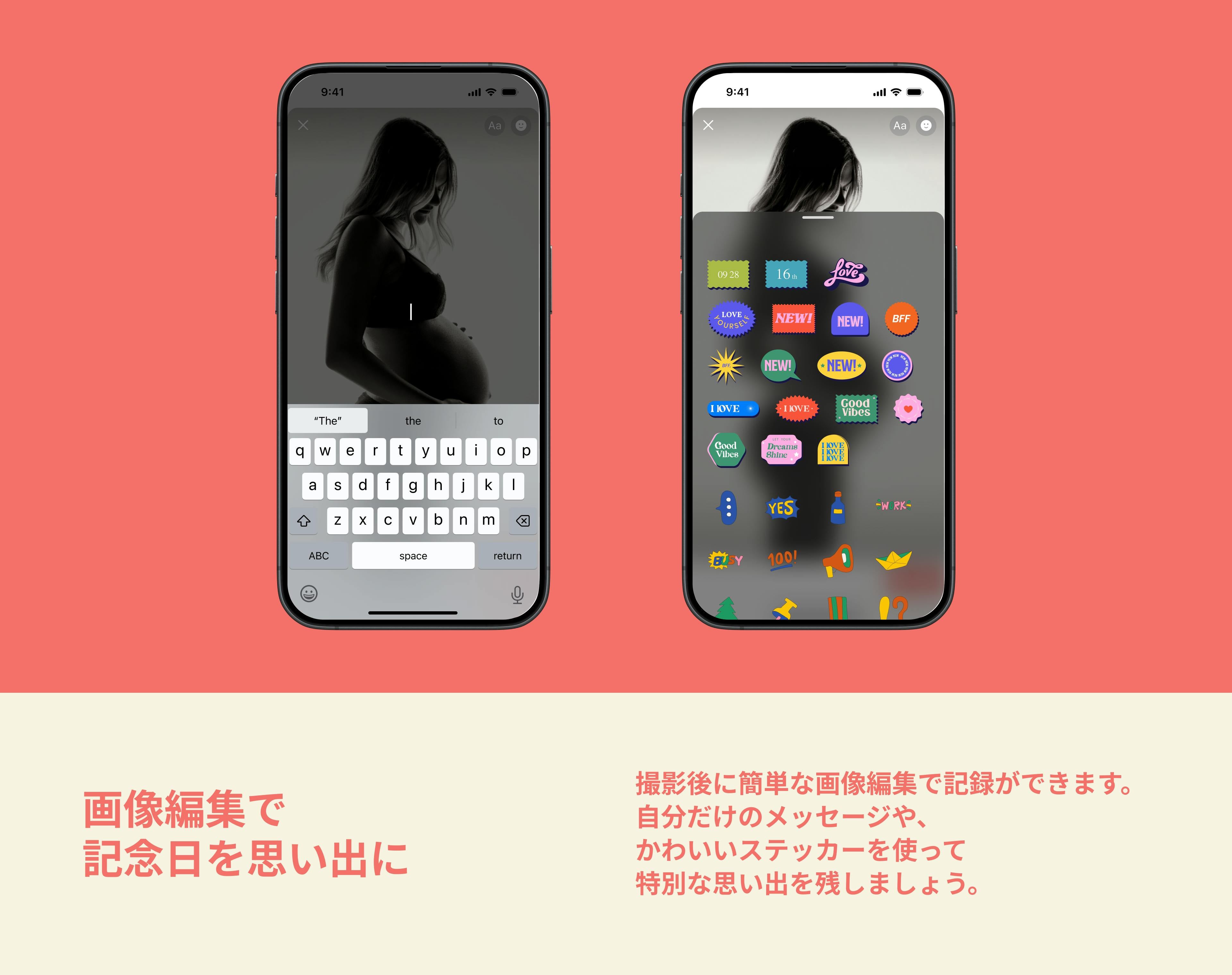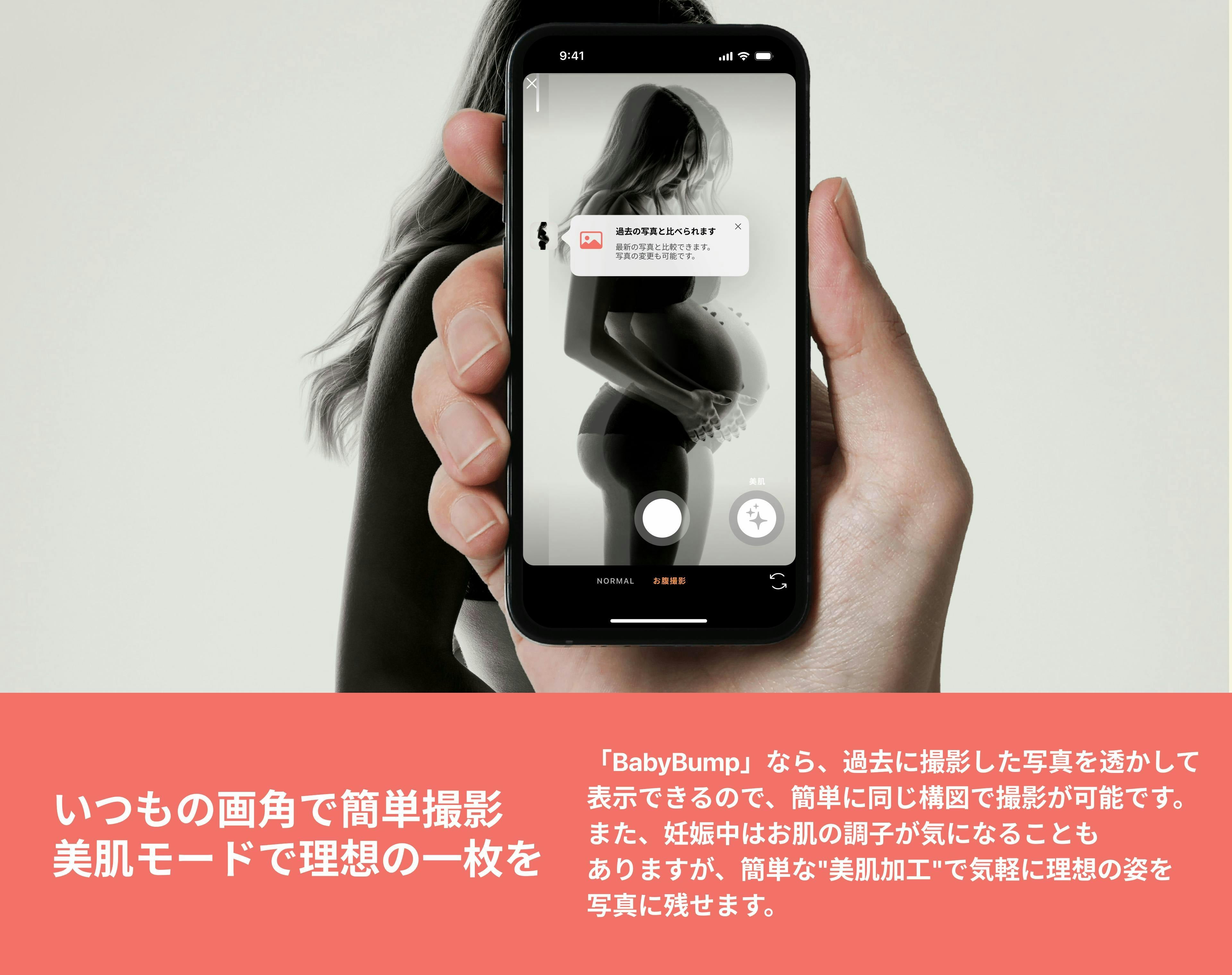 妊娠期間をサポートするアプリはたくさんありますが、妊娠中の体調や気分の変化が大きい時でも、簡単にマタニティフォトを残せるアプリは見つかりませんでした。