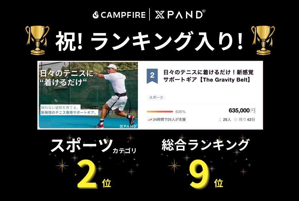 CAMPFIRE内のスポーツカテゴリで2位、総合で9位にランクインすることができました!