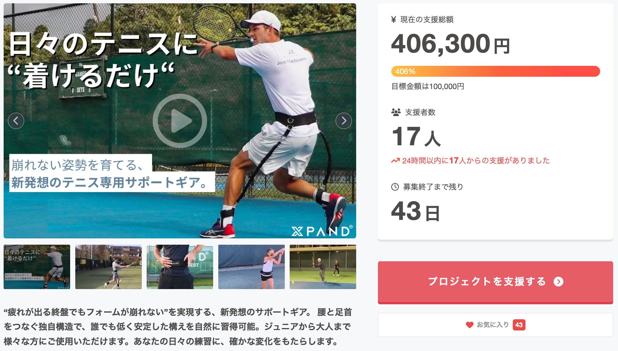 ご支援社様・ご検討中の皆々様 この度は、日々のテニスに着けるだけ!新感覚サポートギア【The Gravity Belt】 にご支援いただきまして、誠にありがとうございます! 販売開始となった、7月19日には多くの方にご支援をいただき、CAMPFIRE内のスポーツカテゴリで2位、総合で9位にランクインすることができました!これもひとえに支援者の皆様のおかげでございます。ありがとうございます!お得な割引セットも数少ないですが、まだ残っております...ぜひ周りで、テニスをやられている方、お悩みの方がいらっしゃいましたら、その方に届くよう、SNS等で拡散をいただけますと幸いでございます!支援はこちら↓↓↓https://camp-fire.jp/projects/785266/preview引き続きよろしくお願い致します。XPAND日本公式チーム 一同