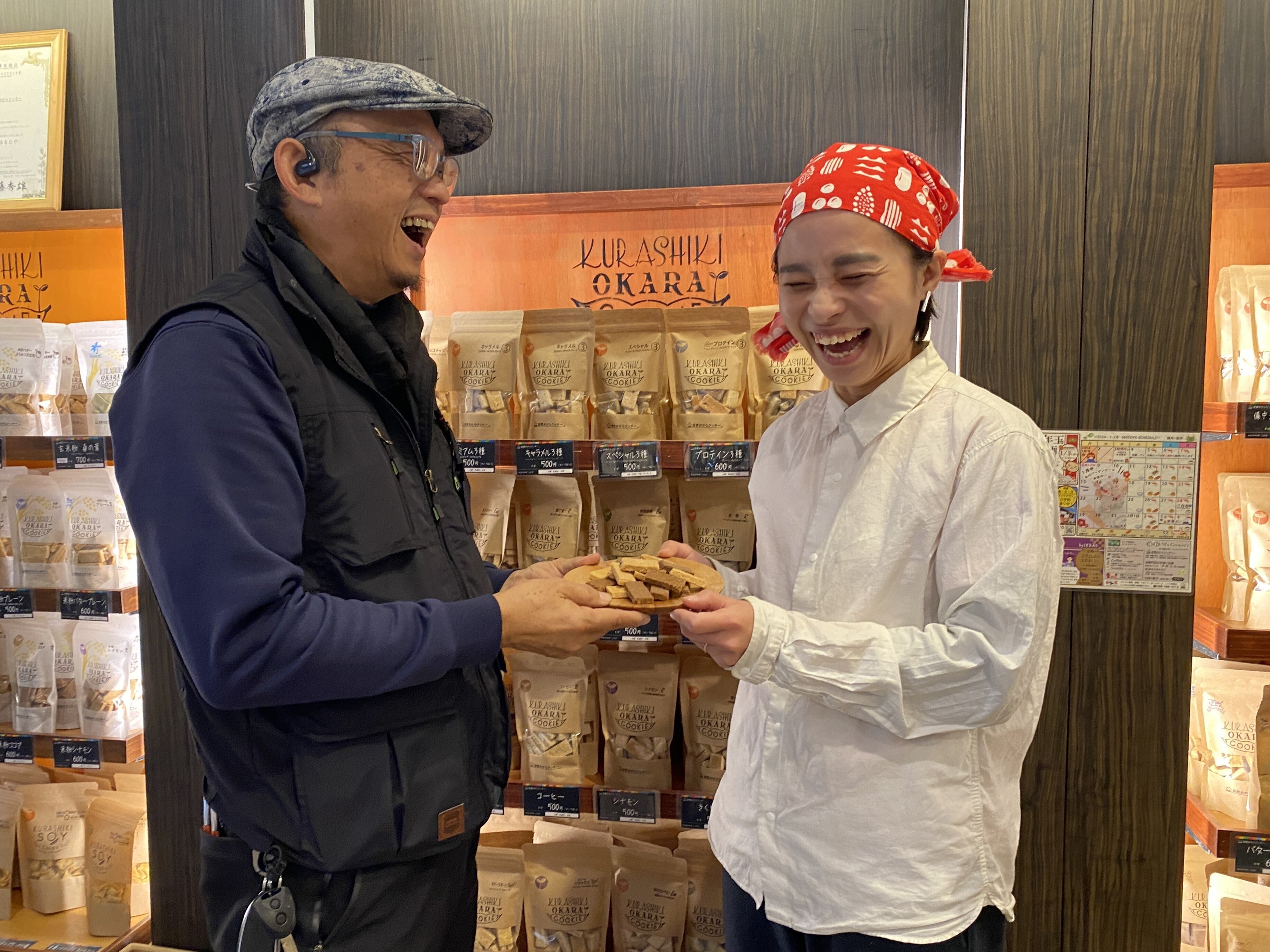 1つ目の出会いは、岡山県倉敷市の有限会社もとやさんが製造する倉敷おからクッキー。生おからと厳選した原材料で作られるクッキーはサクサクで食べやすい。これまでおからクッキーと言えば「堅い」「ヘルシーだが美味しくない」というイメージを持っていた私たちにとって、「こんなに美味しいおからクッキーがあるの⁈」と衝撃でした。