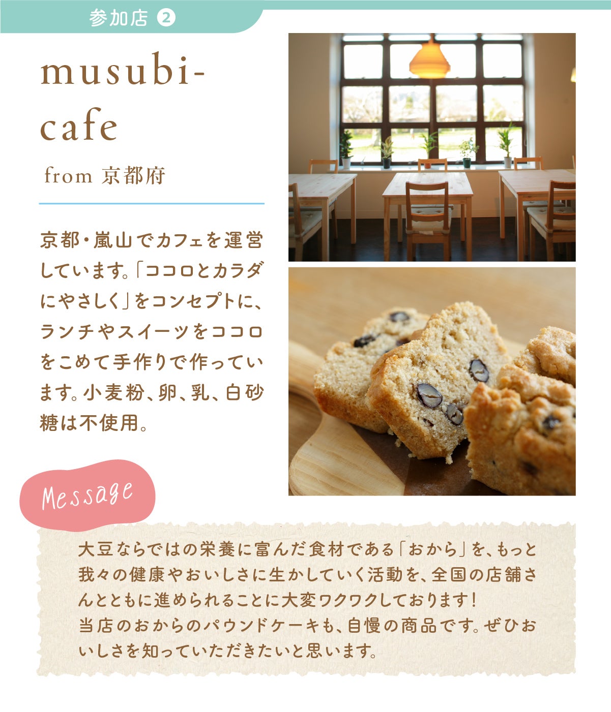 多くの方におからスイーツを味わっていただけたら嬉しいです。