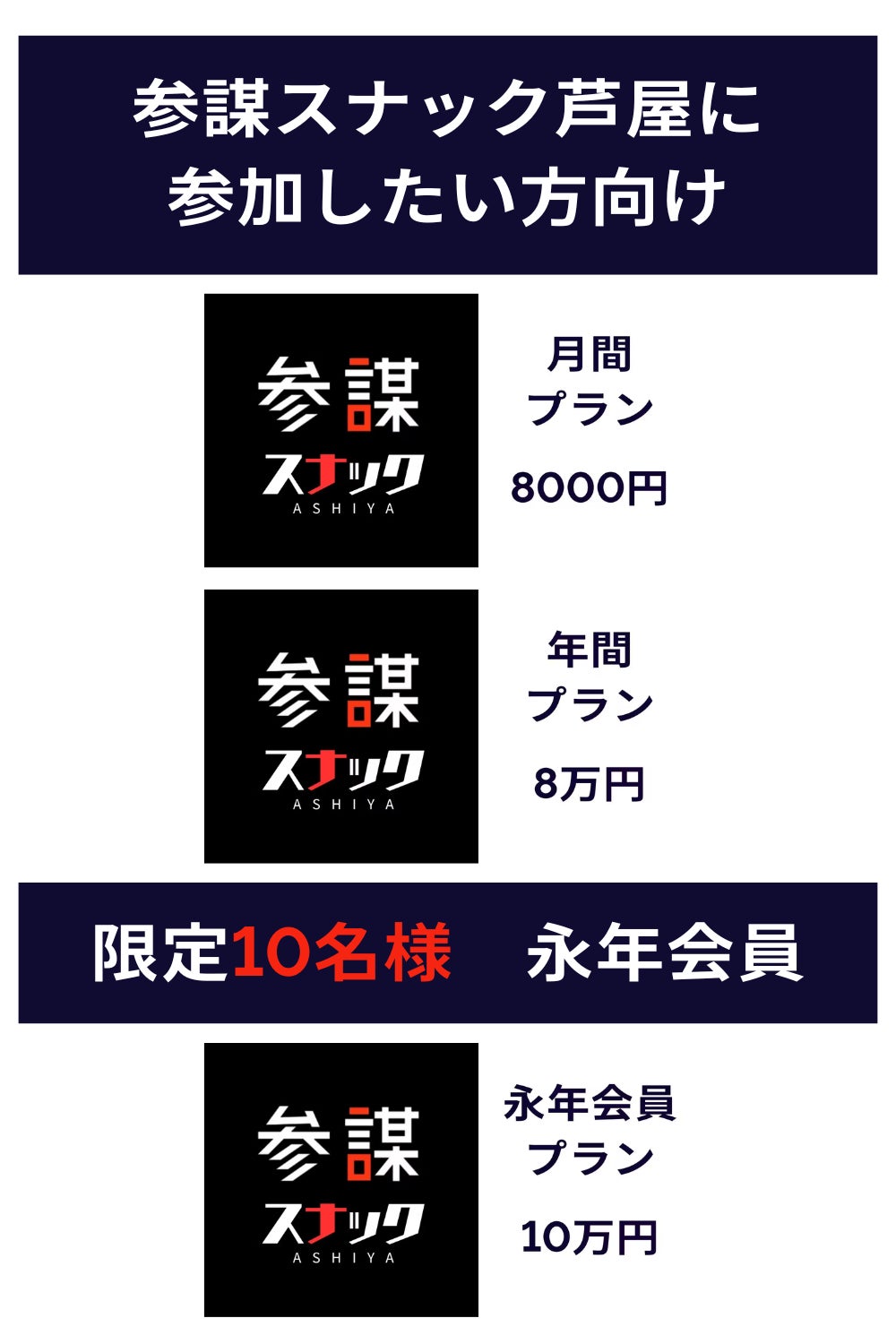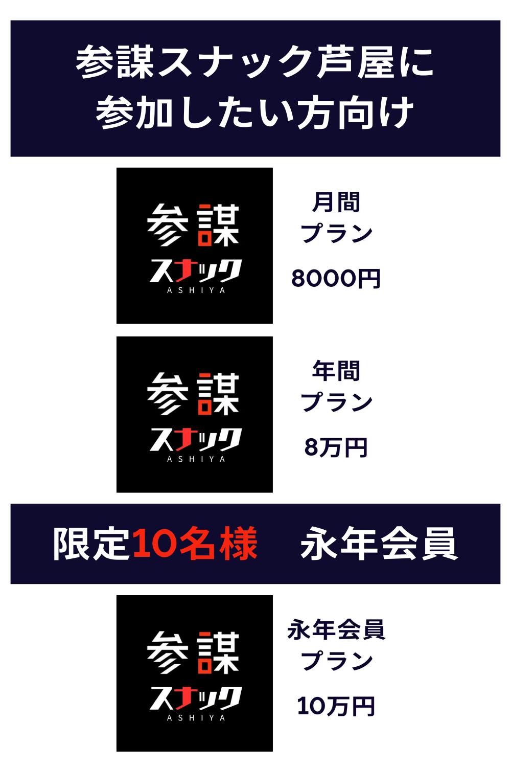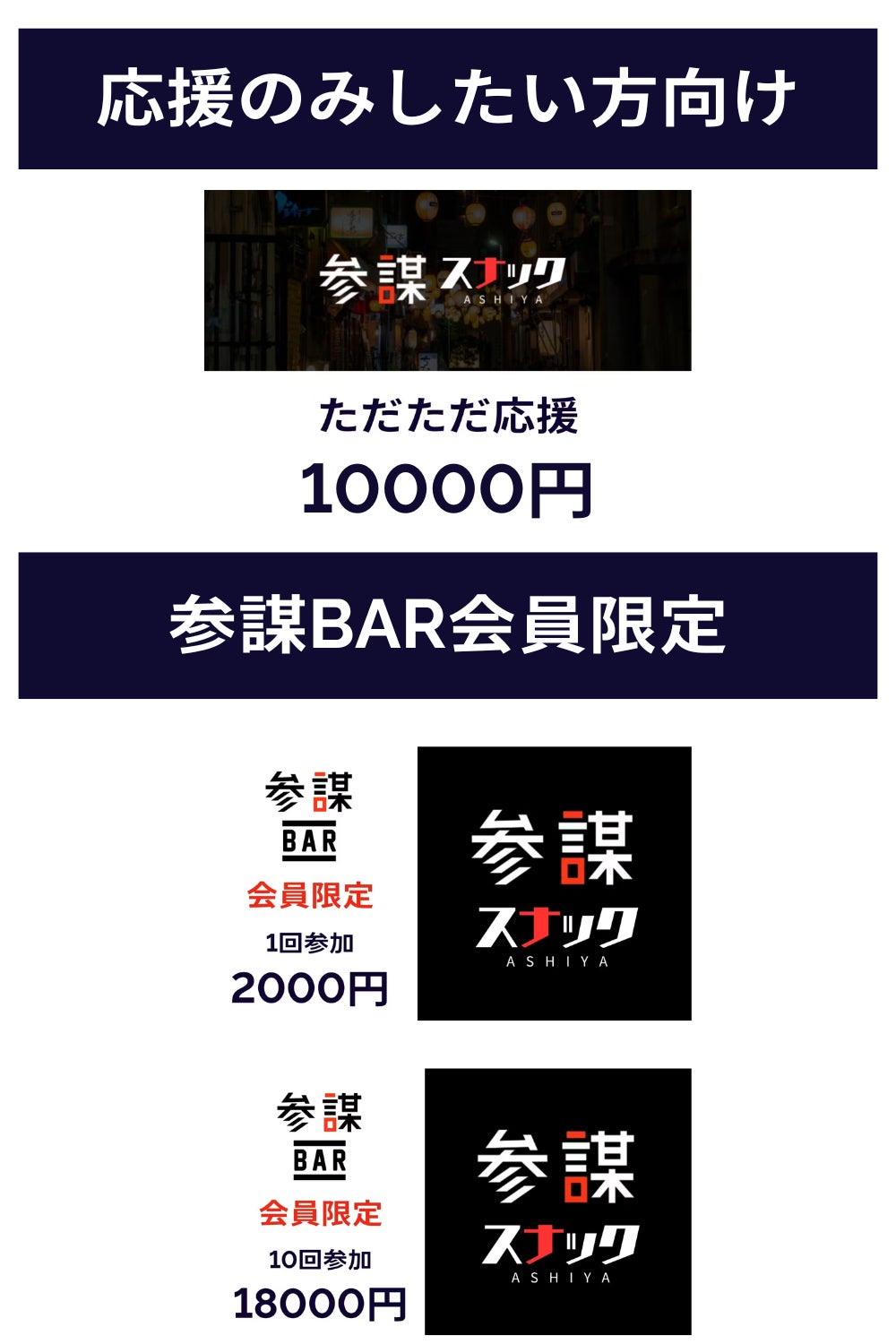 芦屋で会員になると、東京はもちろん、現在計画中の他エリアの参謀〇〇(BAR、スナックetc…)に通うこともできます。