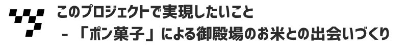 ①御殿場産のお米を使った「ポン菓子」を通じて御殿場のお米を知ってもらいたい