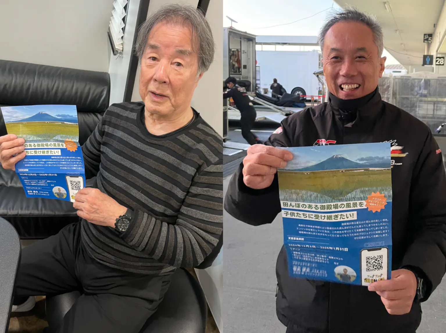 エンジンメカニック米農家の私もサーキットで仕事をしながら、クラウドファンディングのチラシ配りをさせていただきました!