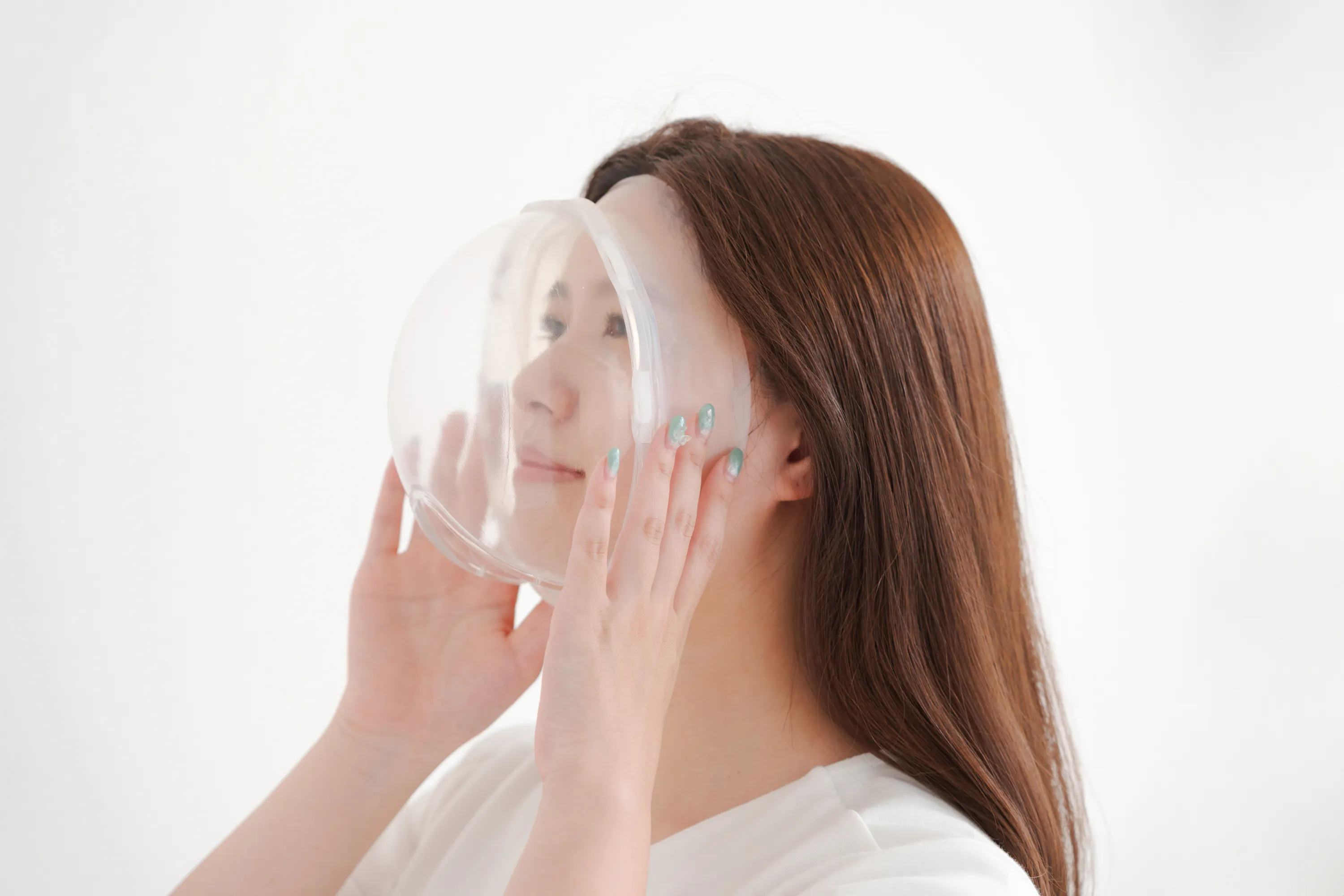 顔をぬらさずにシャンプーをしたいときに、顔全体を透明なマスクで覆ってぬらさないようにするという、シンプルだけれど今までありそうでなかったアイテムです。