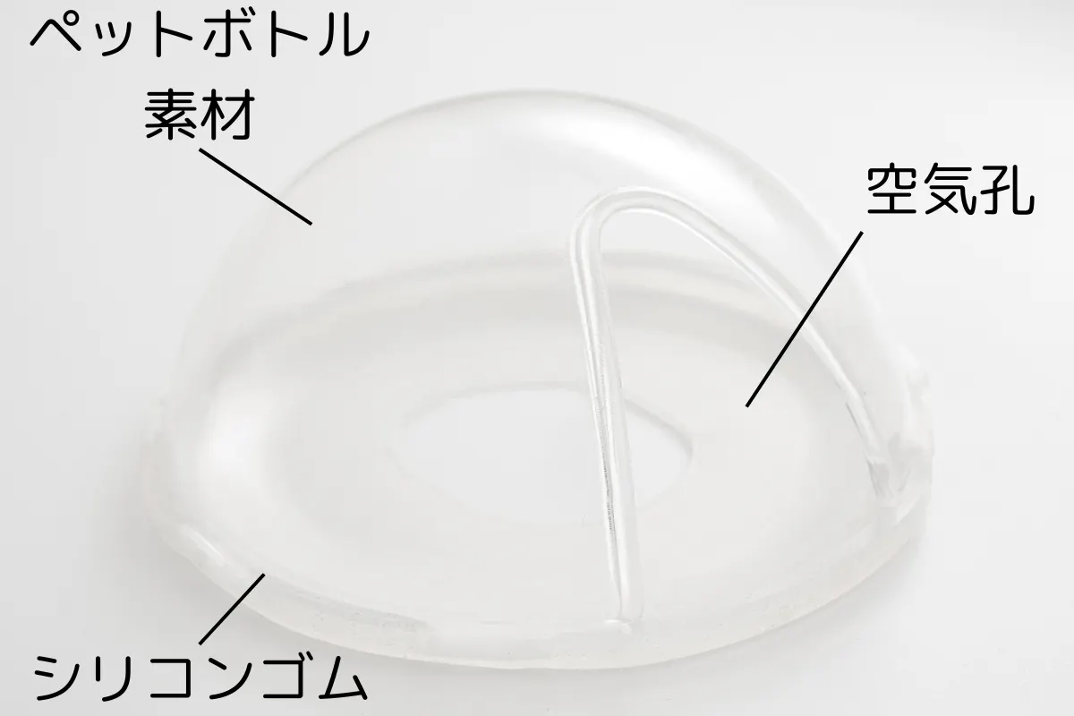 シリコンゴムとポリエチレンテレフタラート(PET)で作られており、柔らかい素材が顔に優しくフィットし、長時間使用しても跡が残りにくい設計です。マスク部分はペットボトルと同じ素材で割れませんので、安心してお使いいただけます。