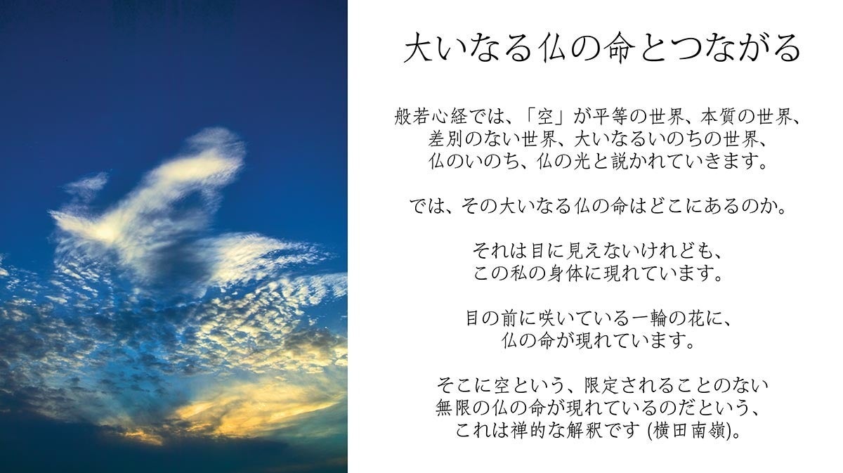 円覚寺派管長・横田南嶺老師の「空 (くう) 」を語る言葉に、空のイメージを重ね合わせていきます。
