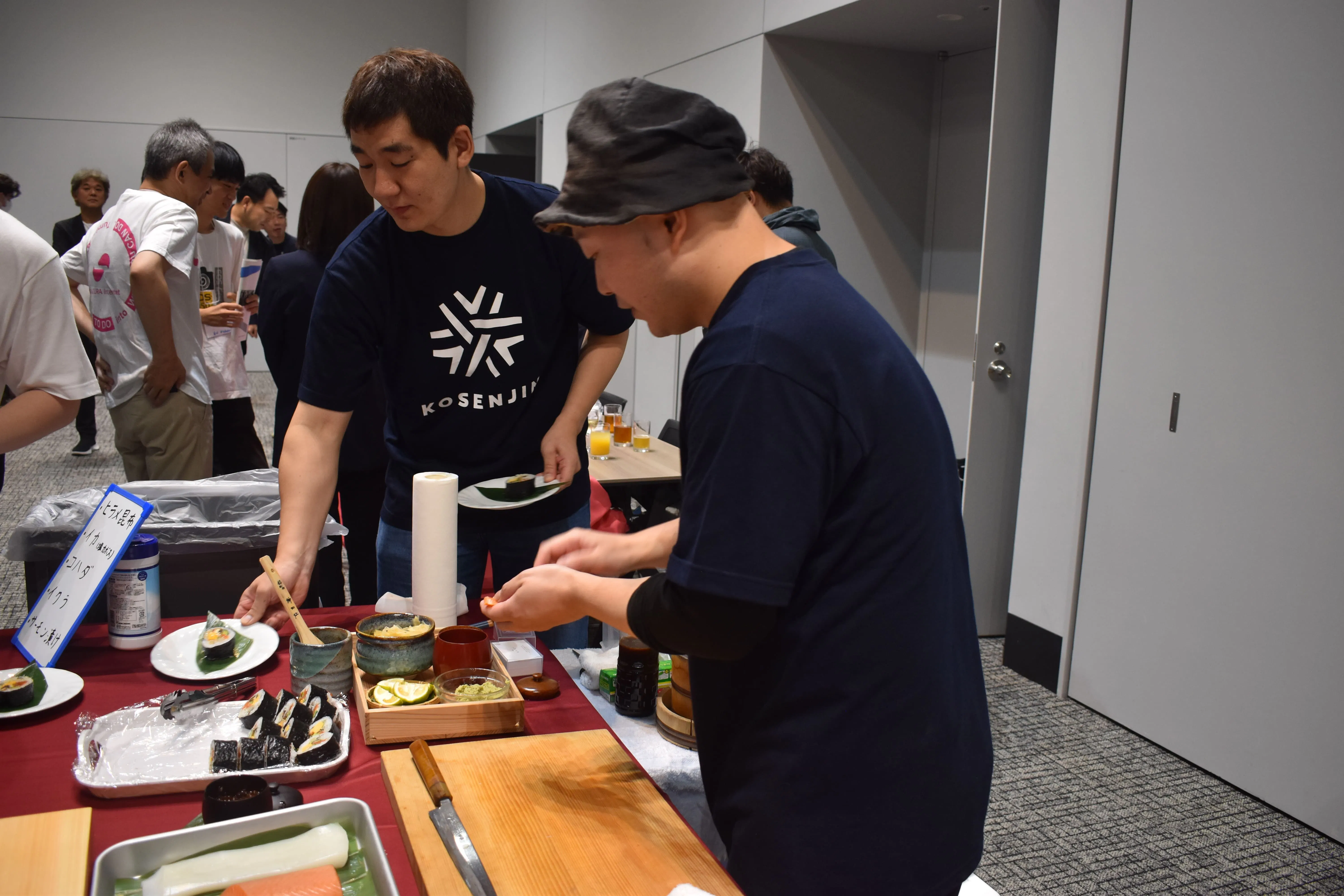 ・交流会:ケータリングやお寿司を囲みながら交流会を行いました。