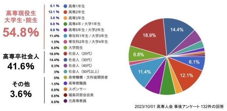 また参加者の属性については現役学生が54.8%、高専卒社会人が41.6%、その他が3.6%と現役学生が多く参加いただきました。