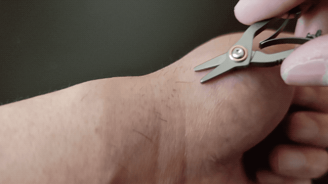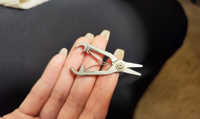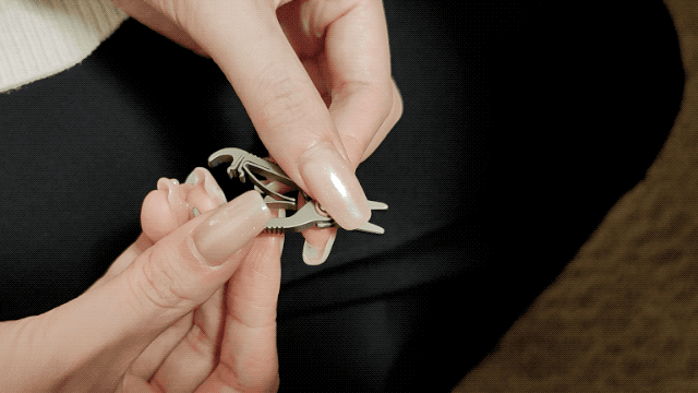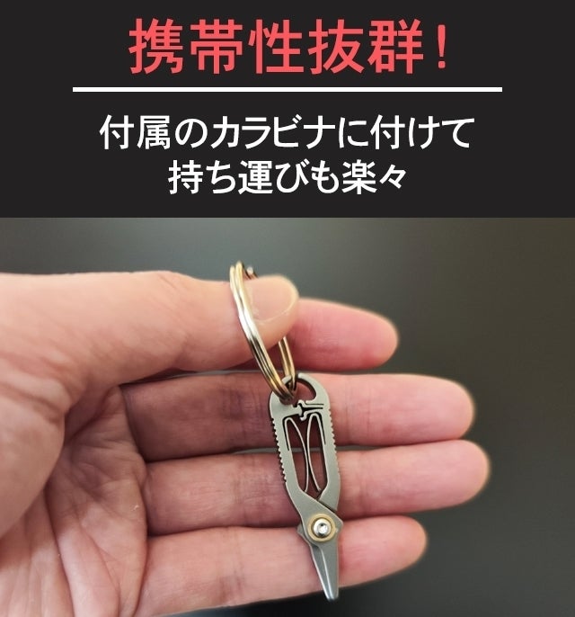 A:わずか5gのミニサイズのハサミです。純チタンで作られているため、軽量さと頑丈さを併せ持ちます。普段鼻毛などの無駄毛を簡単にどこでも一秒カットできるほか、袋の開封や紐の切断など、幅広い日常のシーンで活躍します。