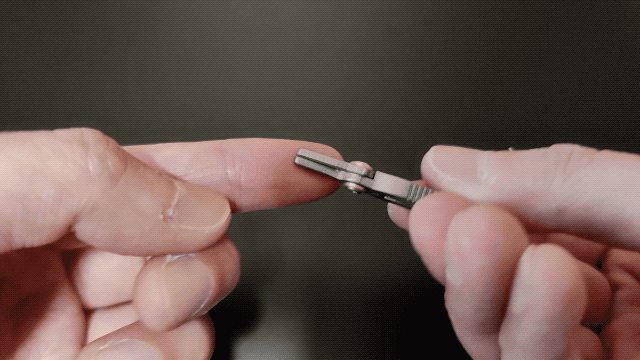 開ける時は、指で先端の穴に力を入れて押すと、ハサミが開きます。