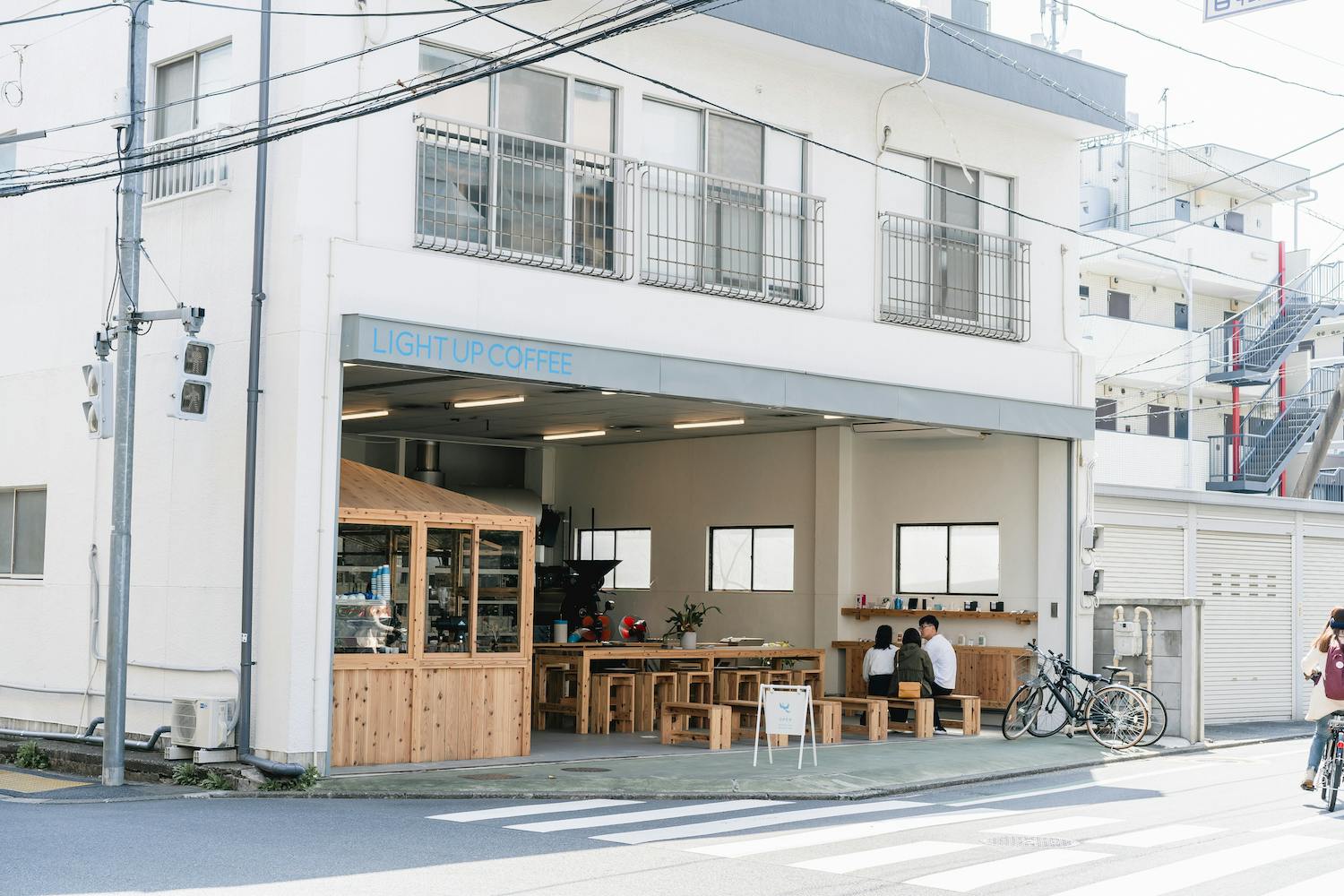LIGHT UP COFFEE 下北沢店は2017年より焙煎所兼コーヒースタンドとして営業しておりました。外のベンチと店内に2席だけの小さな店舗で、奥にはフジローヤルの5kg焙煎機を設置し、すべての豆をここで焙煎してまいりました。