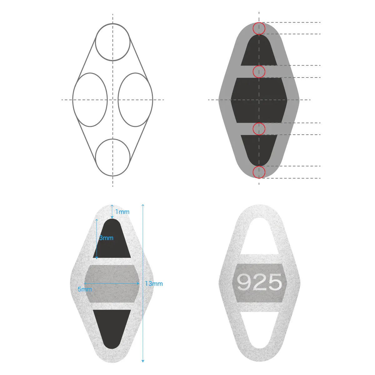 スターリングシルバーであることを表す「925」はモーテルキーの部屋番号とかけて片面に大きく。もう片面には日本製であることを表す「JPN」の文字と私たち NOROSHI (狼煙) を表す「オオカミ」を彫り込んでいます。