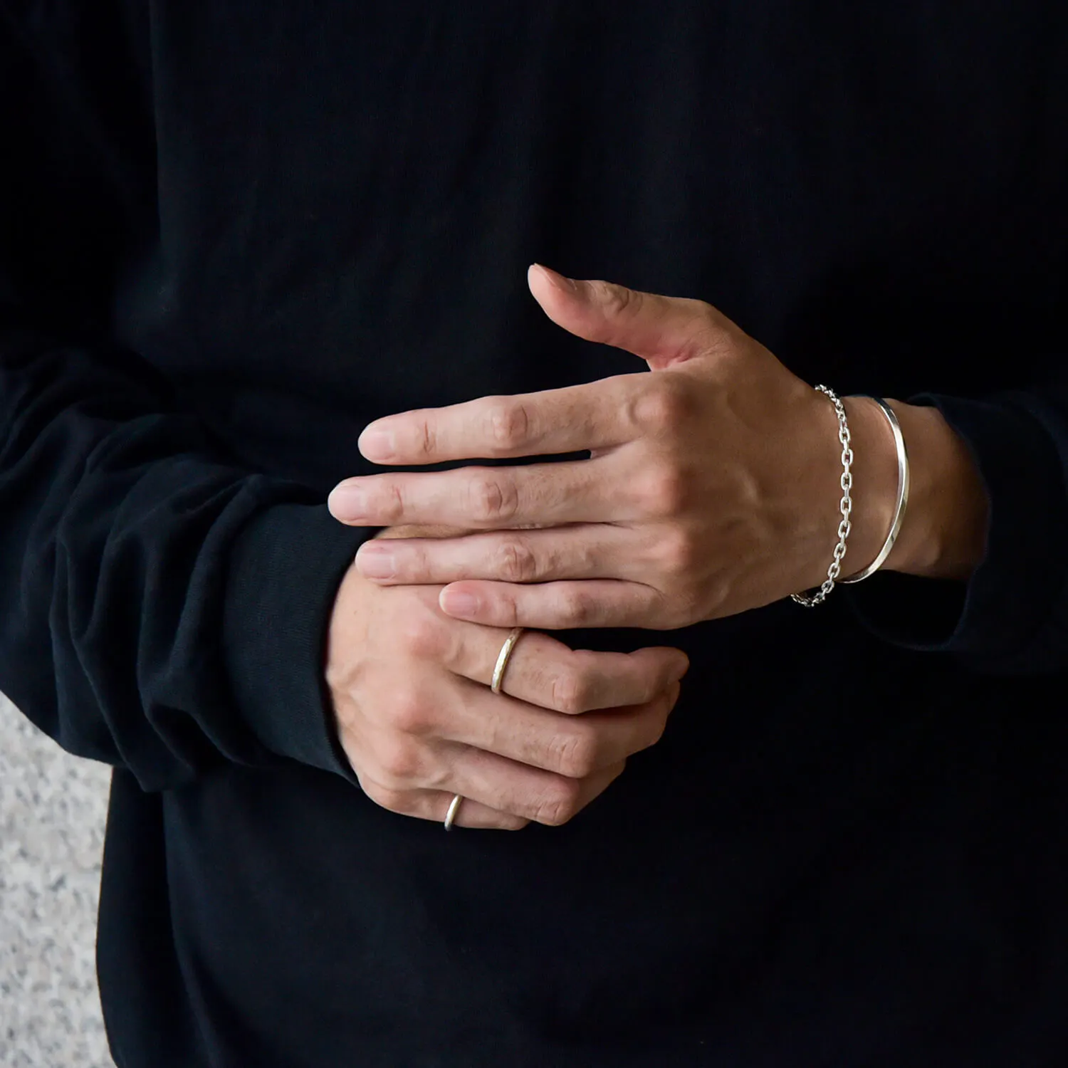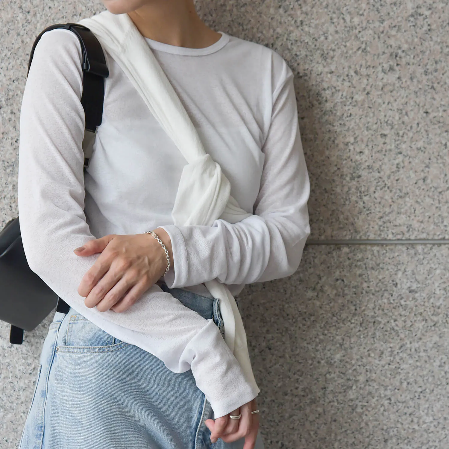 シンプルなコーディネートはもちろん、カジュアルでもモードでもスタイルを選ばずに着けれるのがシルバーの良さです。また、ゴールドなどと比べてシルバージュエリーは重ねづけしても好印象です。