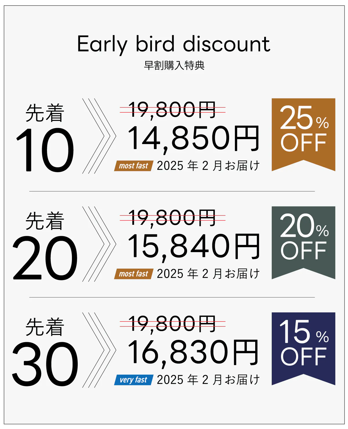 <超超早割25%OFF>:14,850円 / 先着10名様 (2025年2月納期)