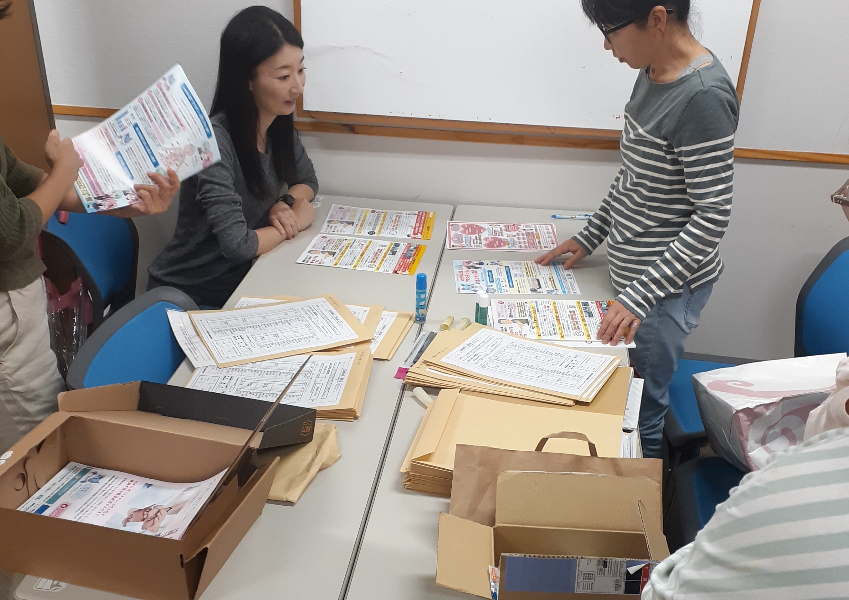 市民センターに掲示用のチラシと講演会ご案内の封入作業も終わり、あとは投函のみ。