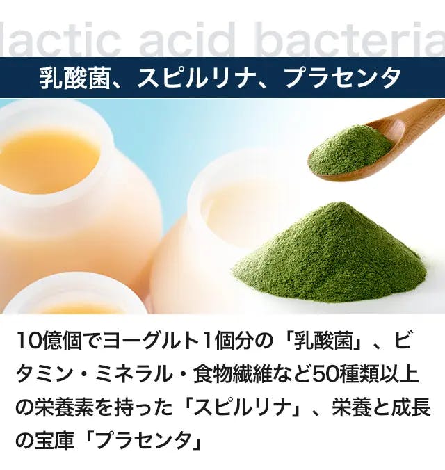また地中海食の健康の源と考えられるレスベラトロール、お馴染みのハイクオリティ成分のコエンザイムQ10、10億個の乳酸菌や成分豊富なスピルリナも贅沢に配合しています。