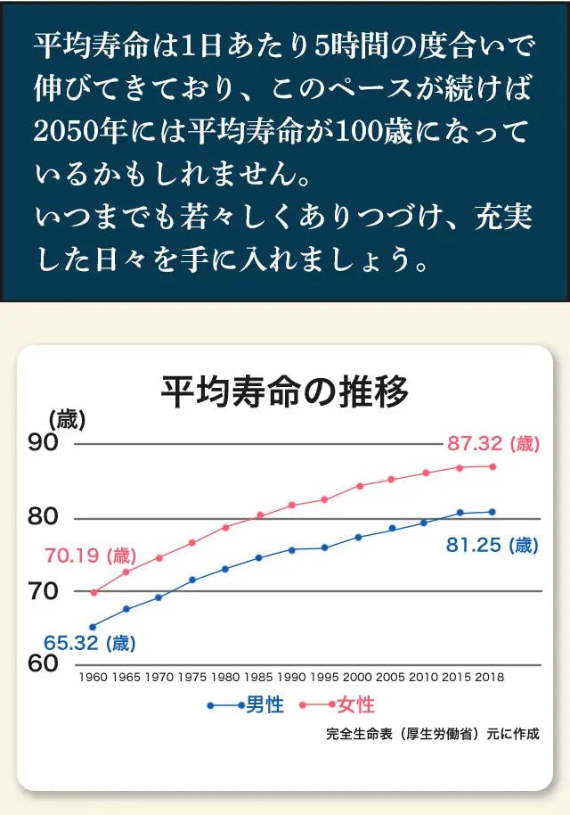 しかし、40代を超えてからも充実した人生を送ることができるように、「今が人生で一番若い時」という意識を持って、今の若い自分を大切にケアすることが重要です。残りの人生を健康に、今を大事にケアして、充実したものにするために、この製品を開発しました。