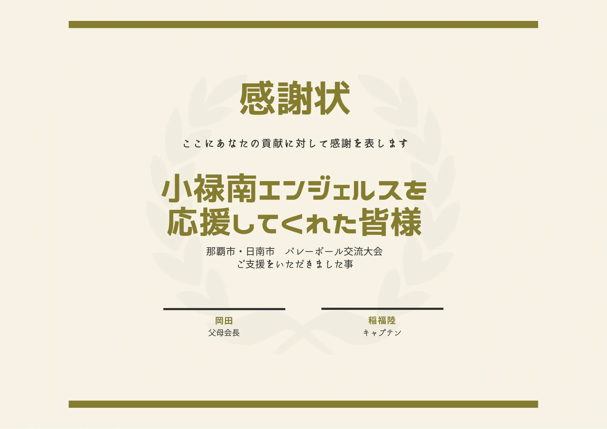 私は男子キャプテン稲福陸の母で、小禄南エンジェルスの父母会役員です。