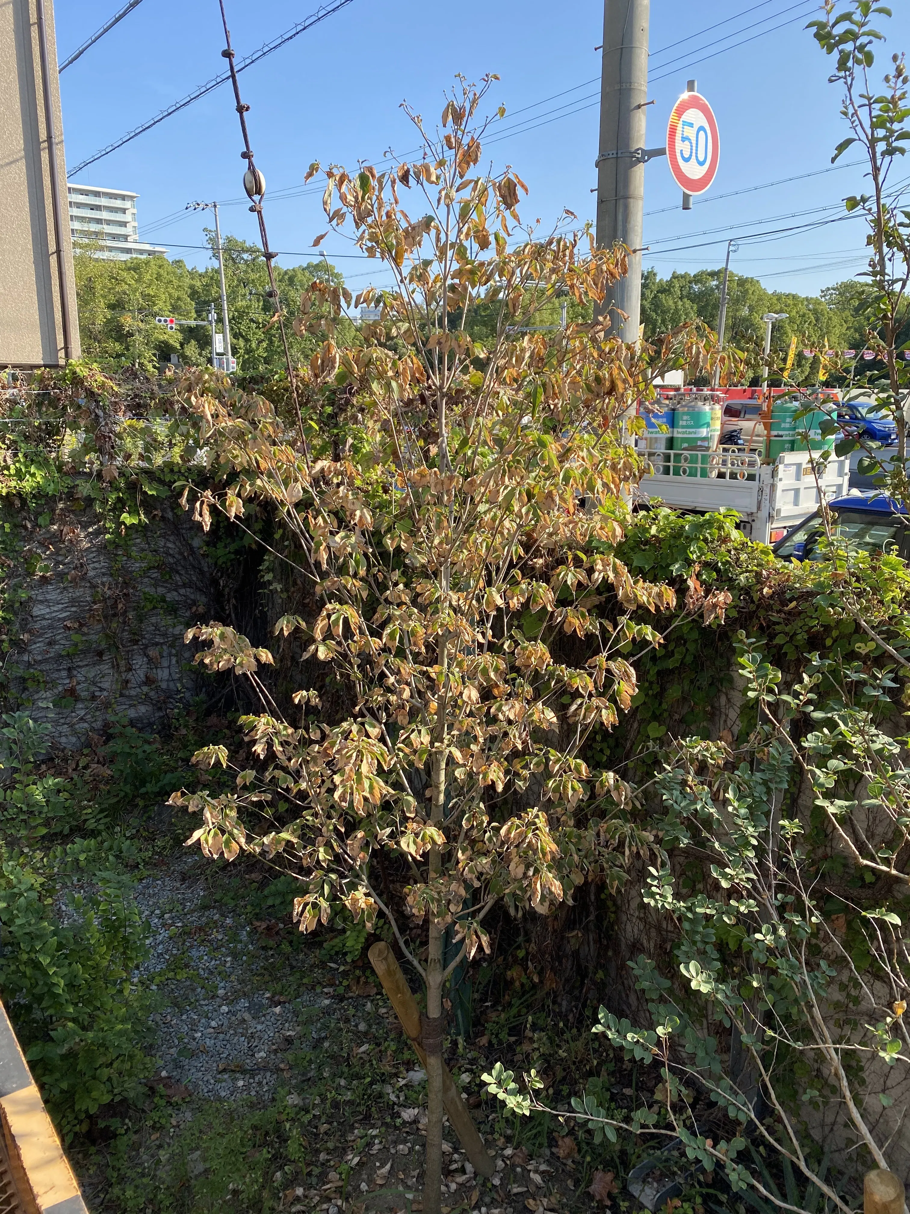 急速な気候変動に適応できず枯れてしまった樹木。