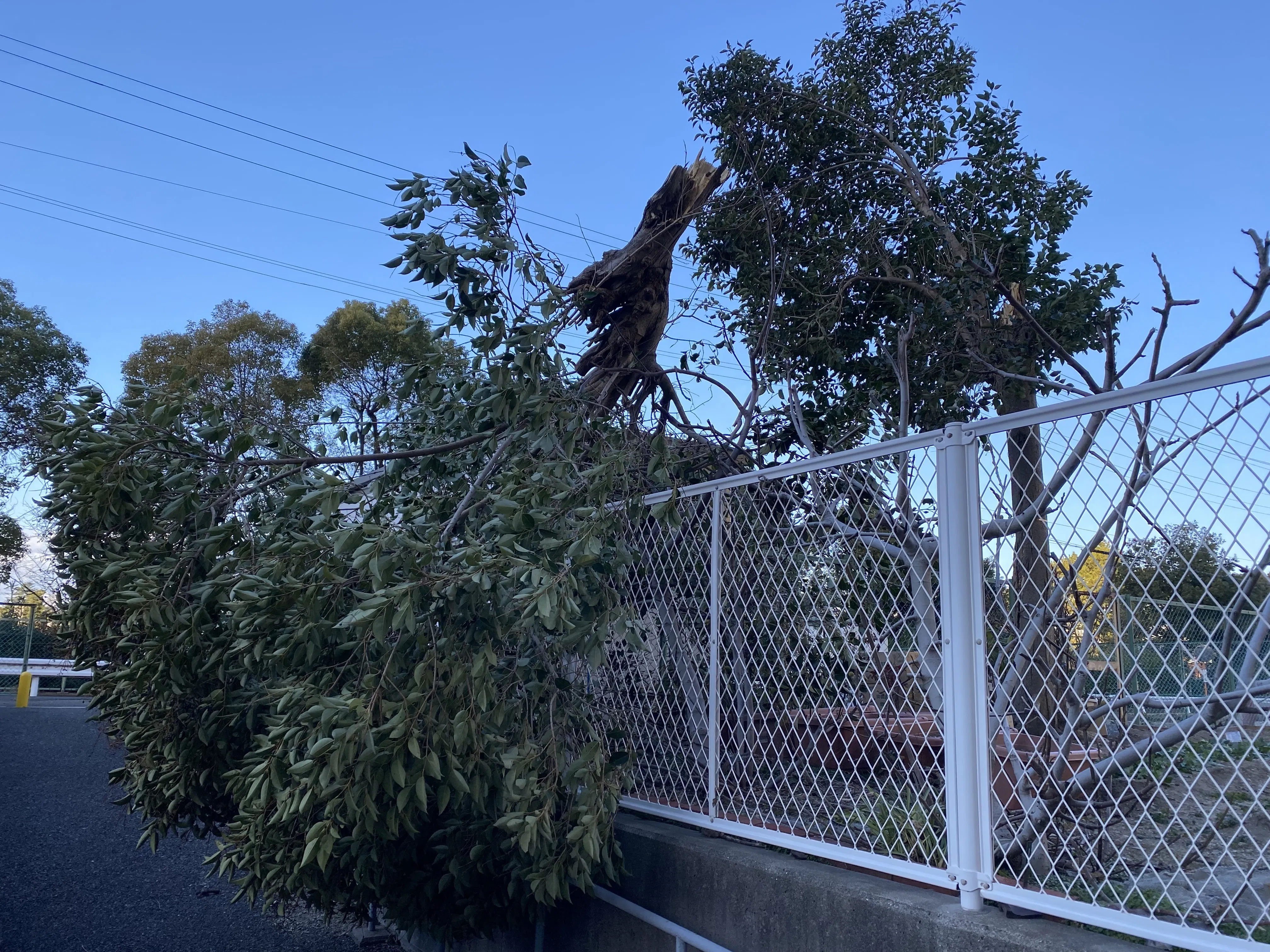 写真は強風の次の日に偶然見つけた幹折れした樹木です。何度も同じ位置で剪定が行われておりそこから腐りが進行して強度が低下した結果、風の強い日に折れてしまったと思われます。幸い人的被害はなくその日のうちに処分されていました。実際折れた現場を見るのは少なく、貴重な資料として写真を撮らせて頂きました。