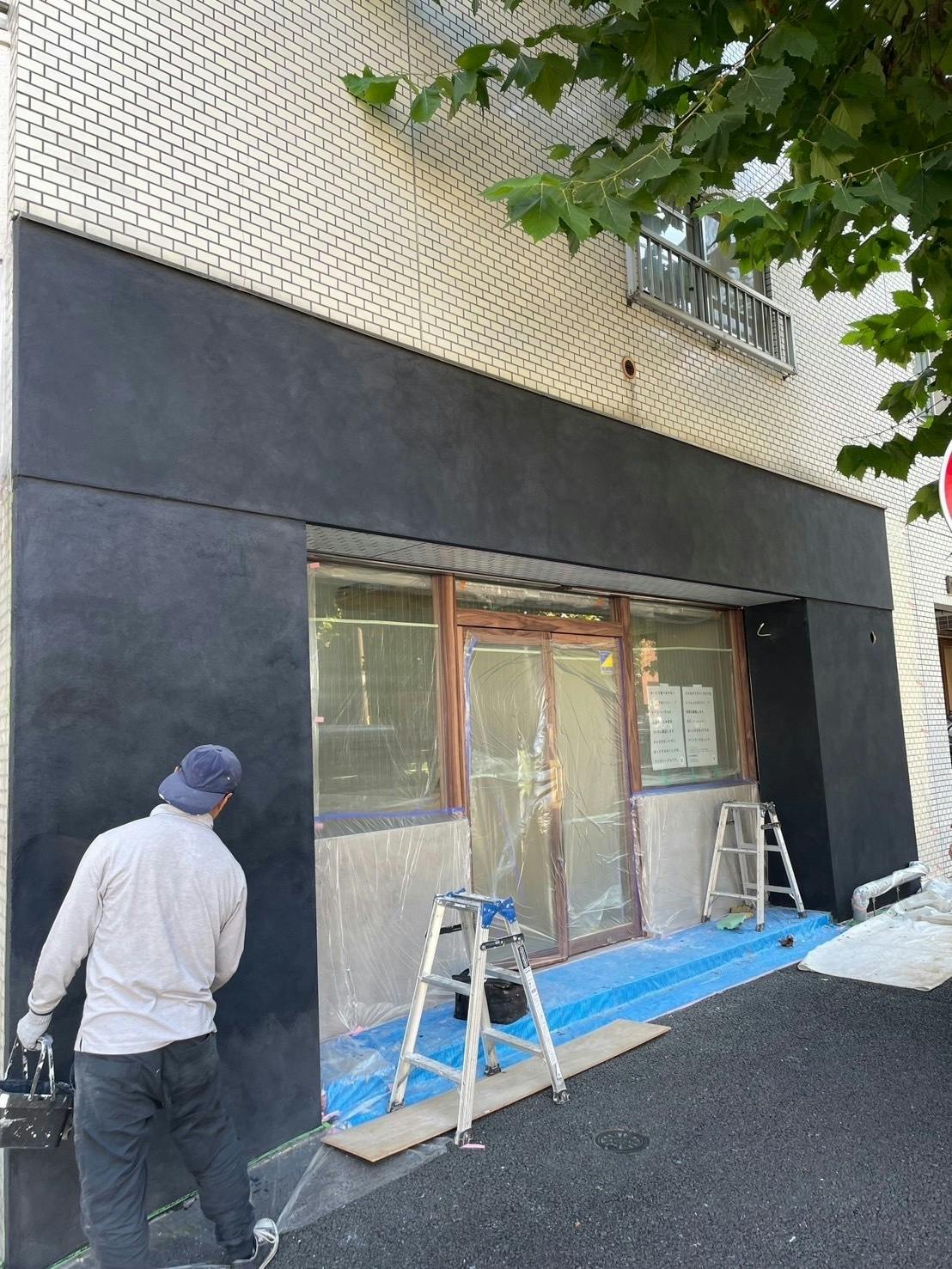 先日のグレーからグッと濃い色になりました。ここにお店のロゴがついてきます。ここからは店内もどんどん変わり仕上がっていく予定です!