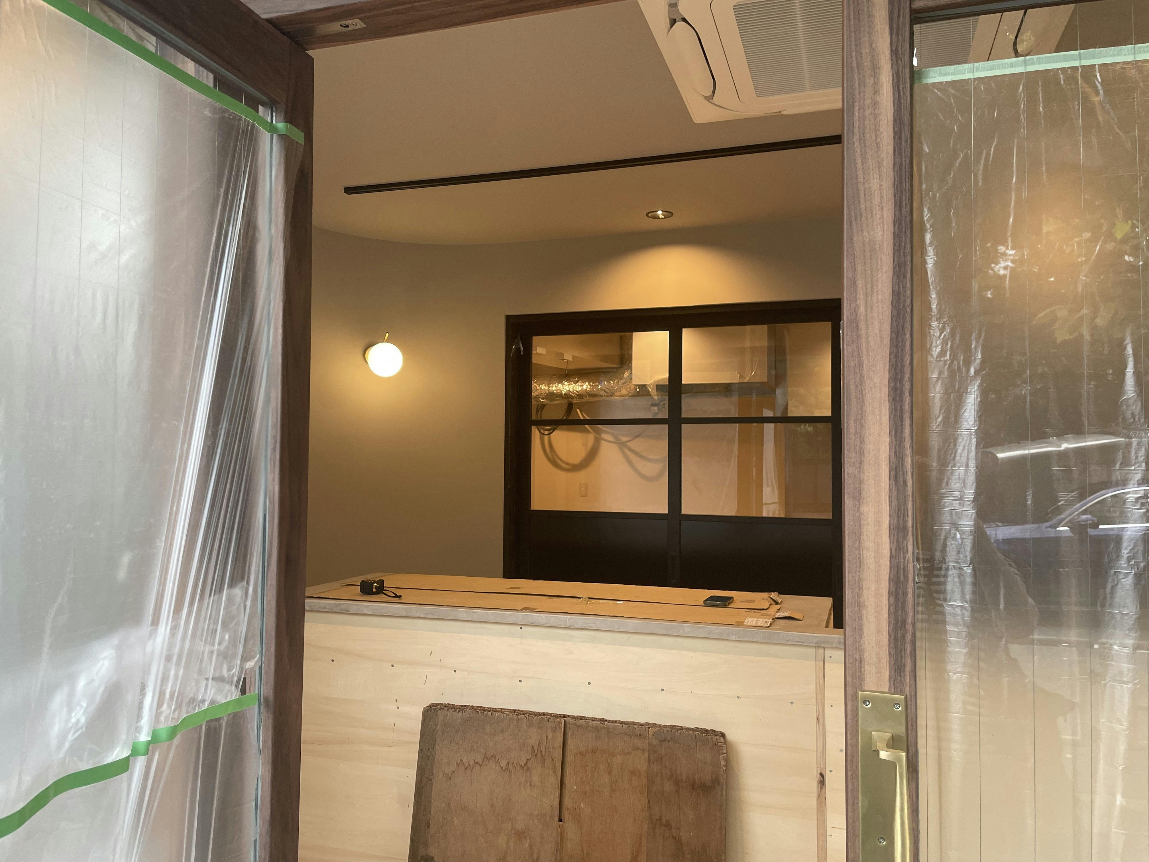 写真は入り口から撮ったものです。奥がキッチンとの間の仕切りドア、普段は開けてオープンキッチンになります。