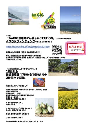 そのチラシをお知り合いに配布していただき、スタッフや出演者だけでなく、淡路島の全島民で「fmGIG淡路島にんぎゃかSTATION」を盛り上げて欲しいです。