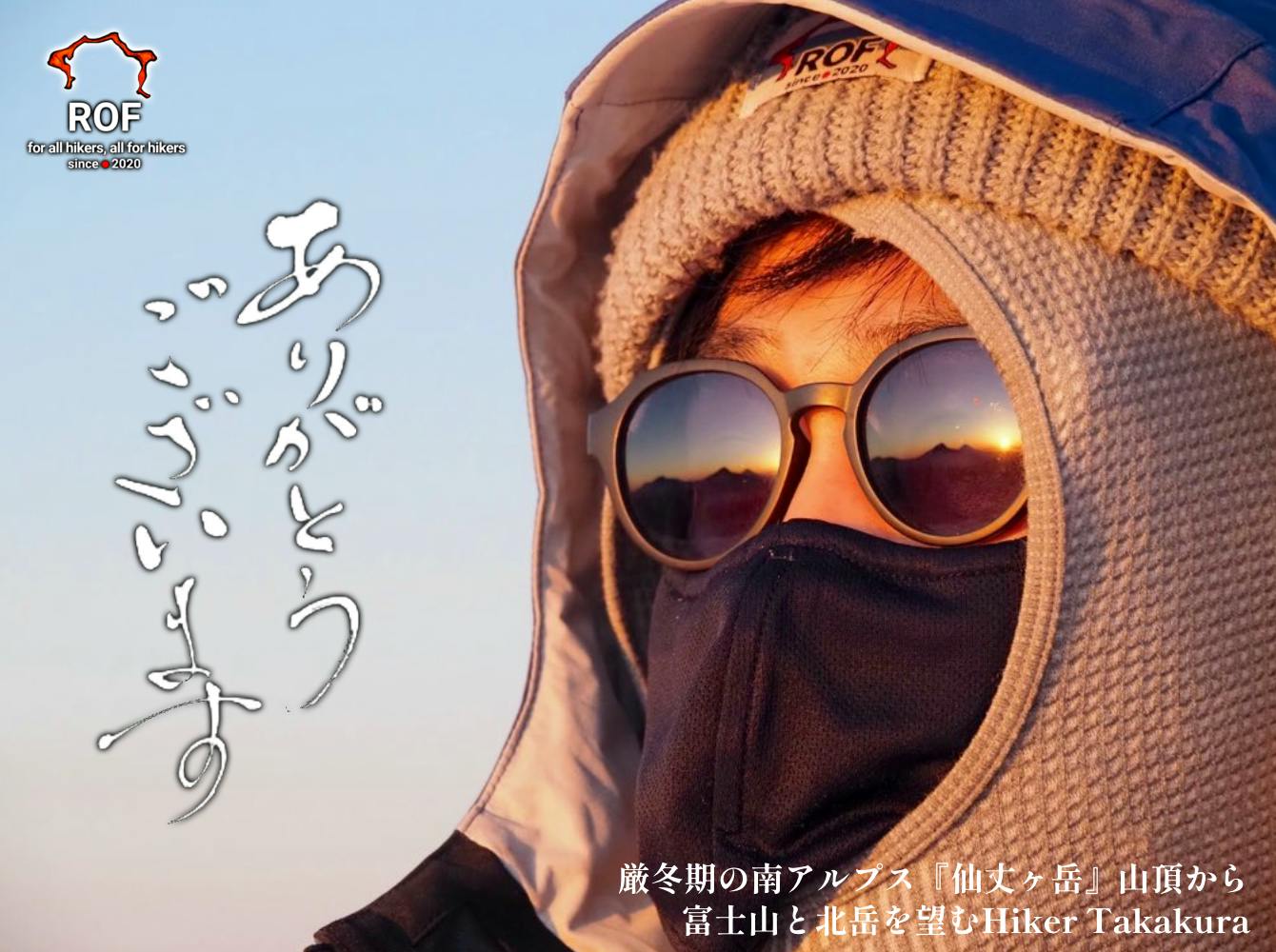 日の出直後の山頂。この後環境に合わせてサングラスやゴーグルを使い分けて無事に下山。
