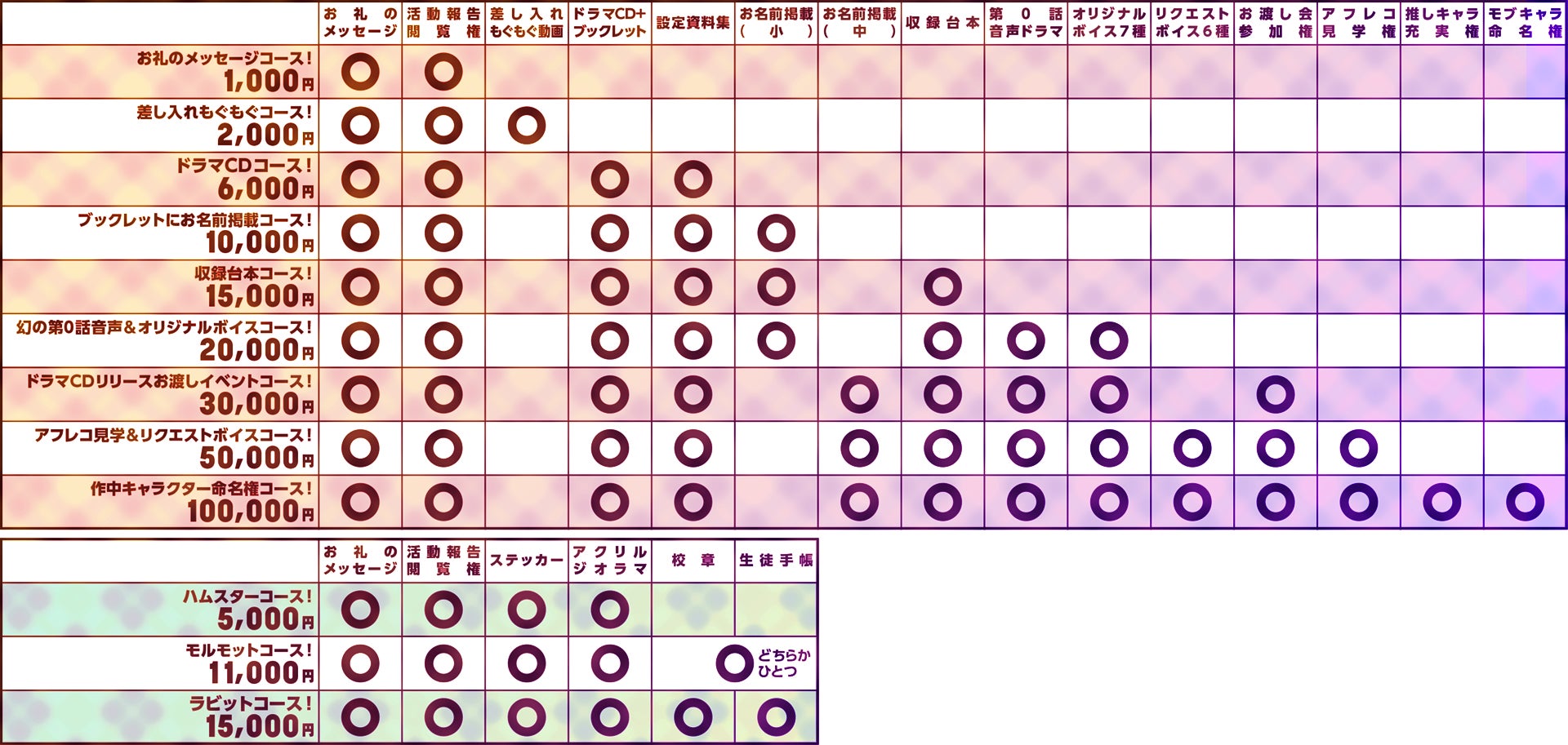 募集金額達成後要望が実現可能となりグッズなどが制作できるようになった場合は、ストレッチゴールを含めた単品コースとして販売を実施する可能性があります。
